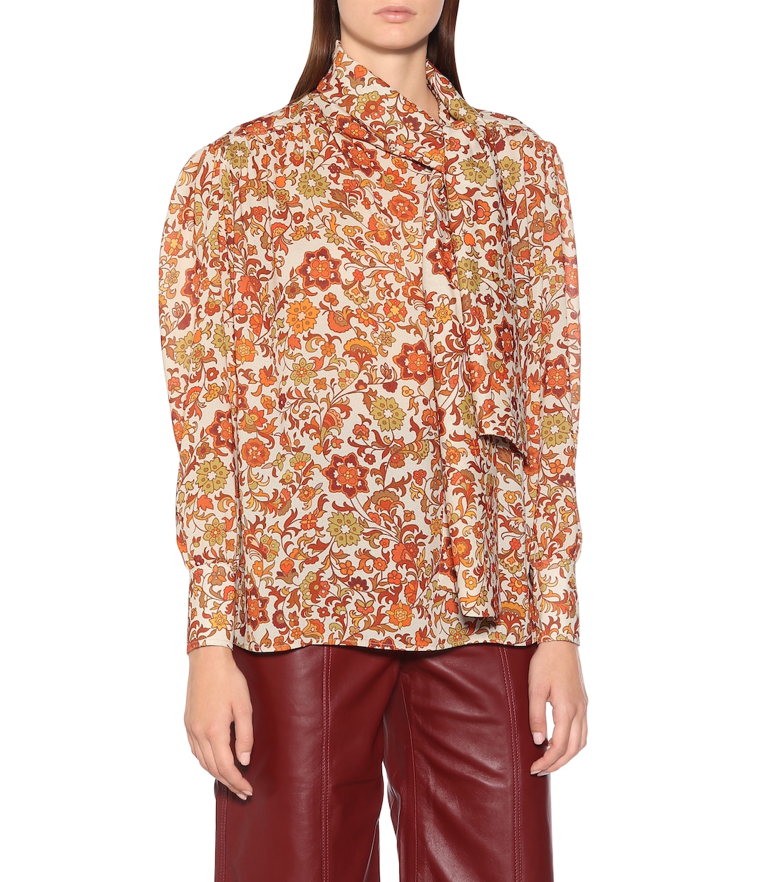 Эту блузку с бантом от Dodo Bar Or украшают разноцветные цветы оттенков оранжевого и желтого. Сочетайте утонченный силуэт с брюками строгого кроя и остроносыми туфлями, чтобы создать непринужденный рабочий стиль с ноткой индивидуальности.