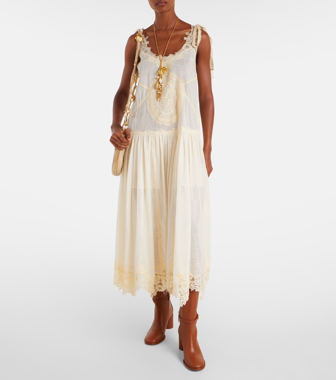 Эфирность и романтичность - лишь поверхностные характеристики произведений Циммермана. Сапоги Eddie до колена с каблуком высотой 70 мм выполнены из кожи в классическом силуэте с круглым носком и изящной фестончатой отделкой.