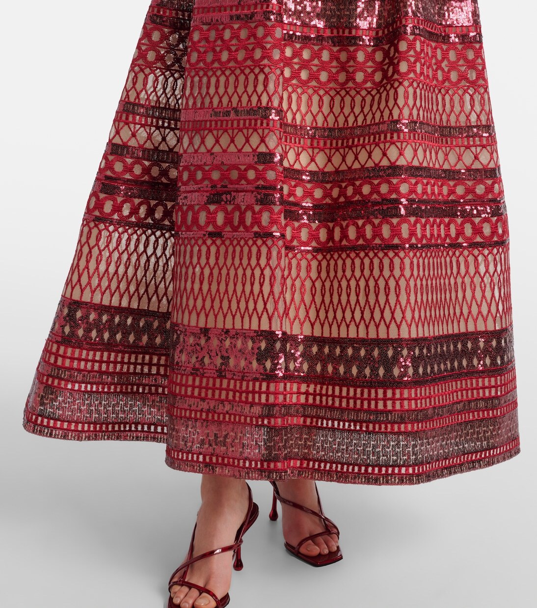 Эффектные творения Эли Сааба доказывают, что правильный наряд может сделать особое событие еще более запоминающимся. Это платье-корсет с вырезом в форме сердца и расклешенной юбкой украшено пайетками и вышитыми полосками по всей поверхности.