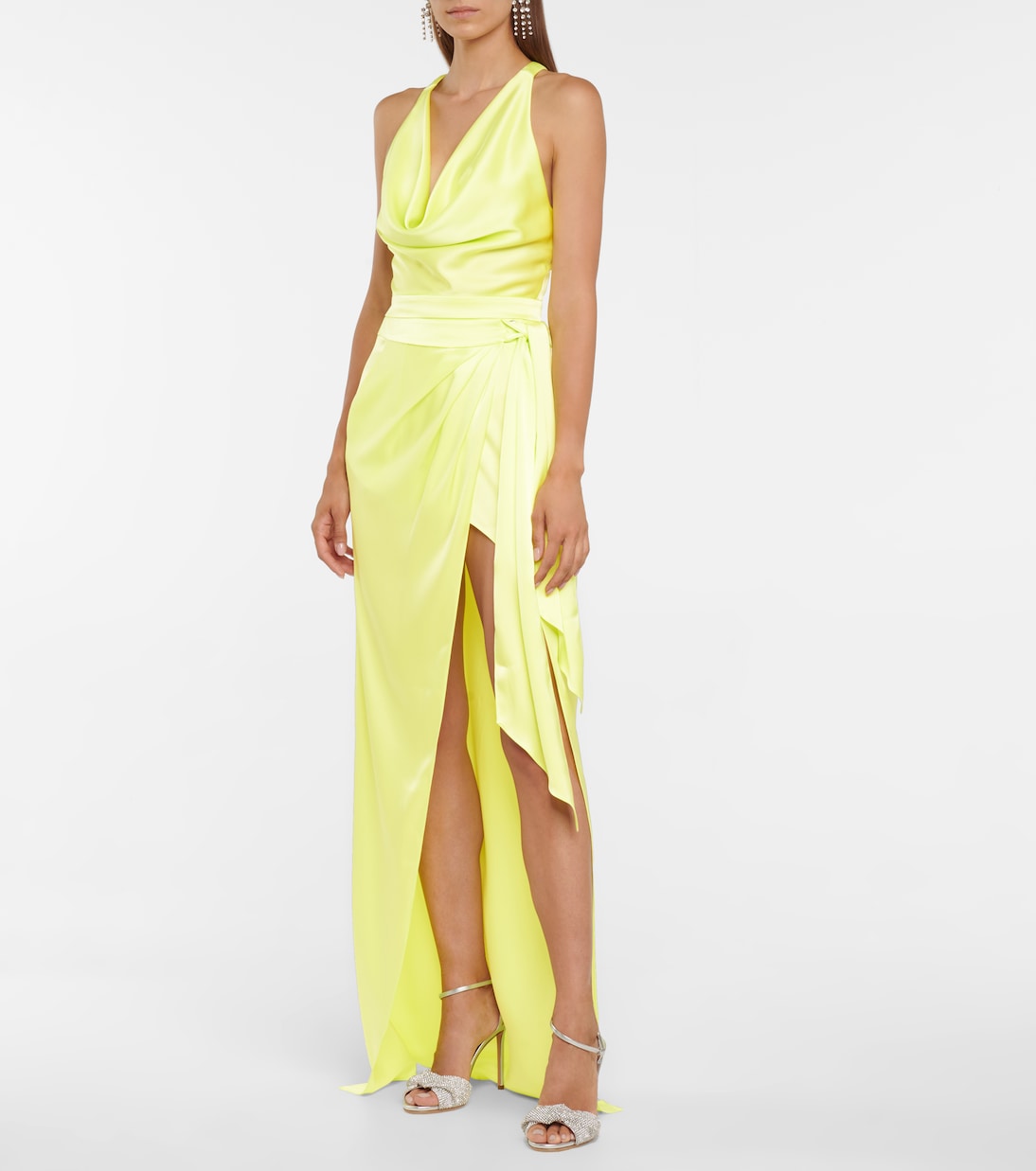 Юбка макси от Дэвида Комы - отличный выбор для вашего гардероба: ее можно носить как повседневно, так и по-деловому в зависимости от ситуации. Она выполнена из неоново-желтого атласа с эффектом облегающего кроя. Заправьте футболку для более повседневного образа.