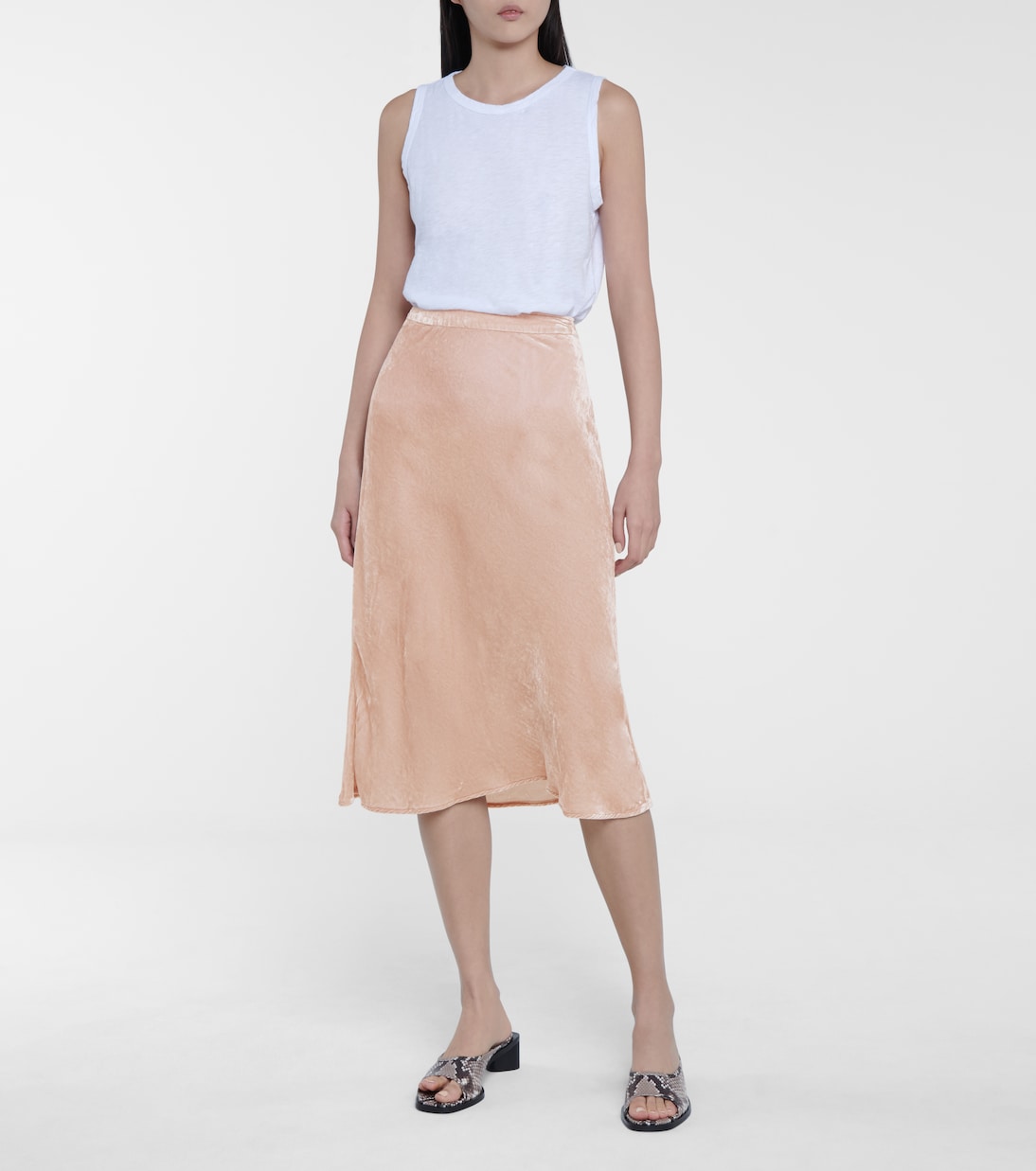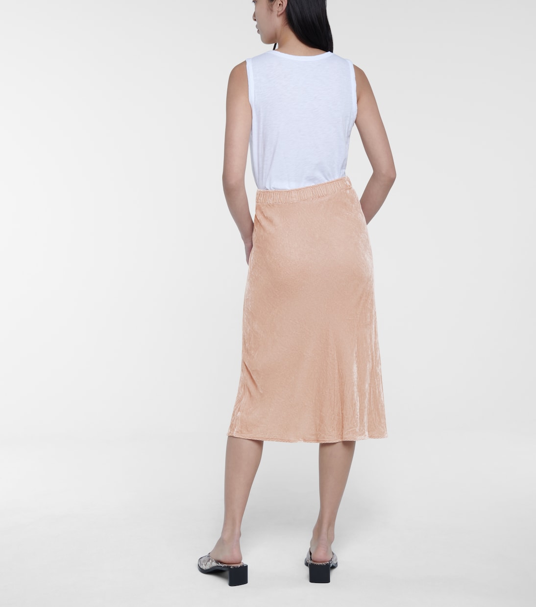 Юбка миди с косым кроем, как у Taelyn от Velvet, стала таким же необходимым элементом гардероба для холодной погоды, как футболка - для летнего гардероба. Эта юбка, изготовленная в США из бархата с добавлением шелка, окрашена в нежный розовый оттенок. Носите его с облегающими водолазками и свободным трикотажем.
