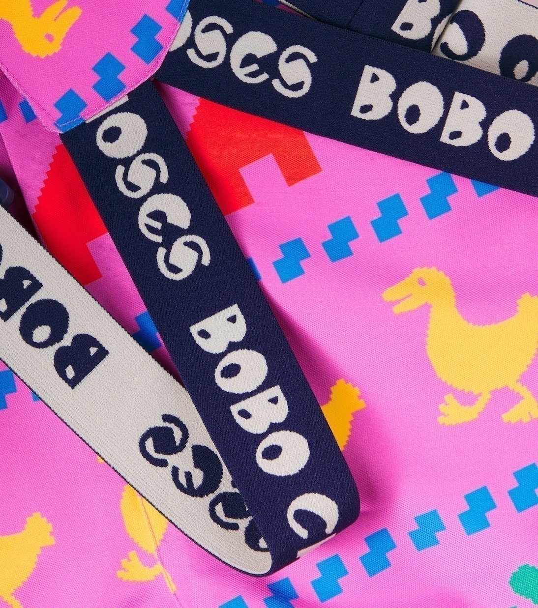 Юные лыжники будут блистать на склонах в этих горнолыжных комбинезонах от Bobo Choses. Они изготовлены из панелей технической оболочки с яркими и игривыми рисунками и регулируются по размеру с помощью широких лямок.