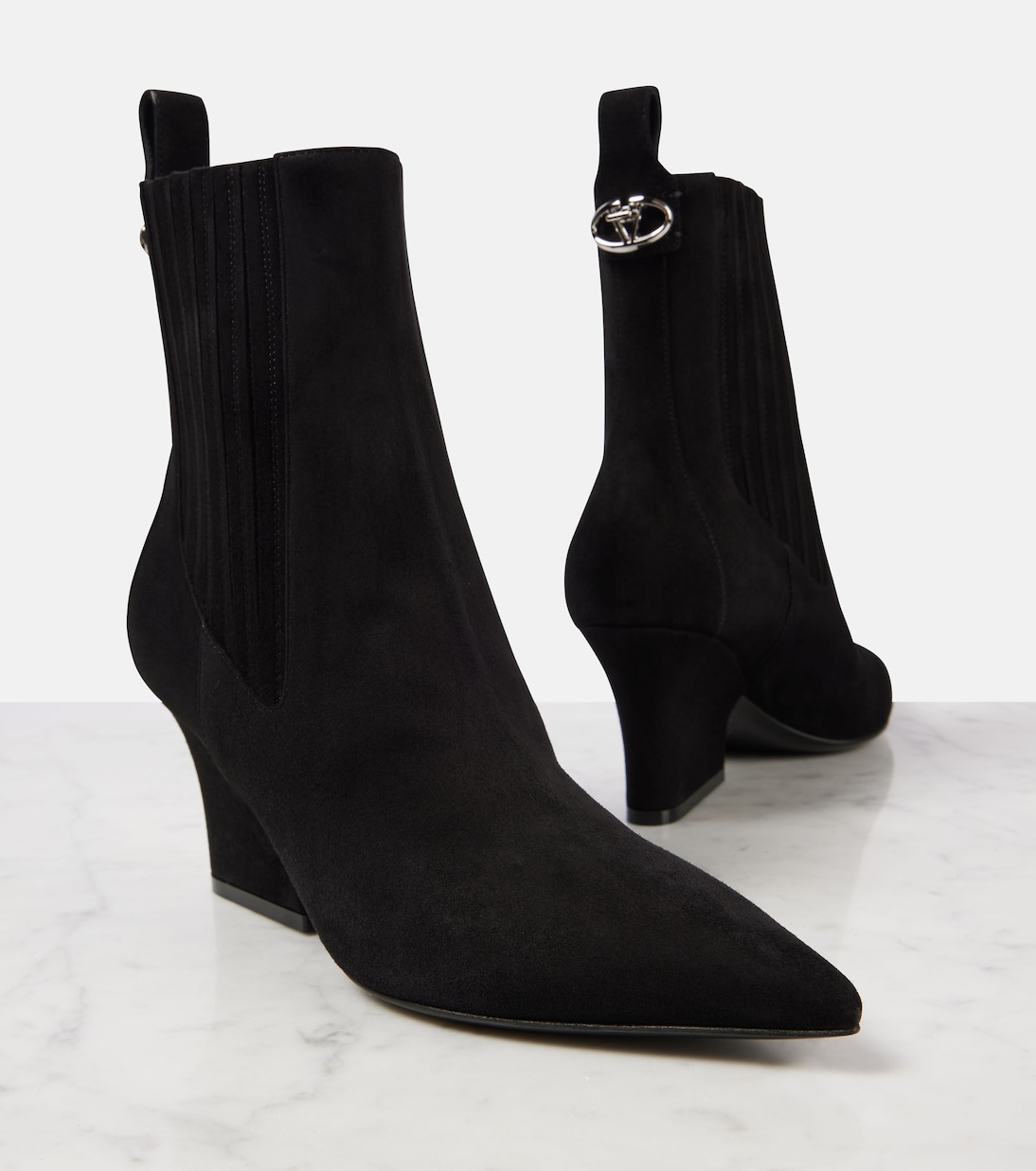 Замшевые ботильоны VLogo Lockette Valentino Garavani, Nero