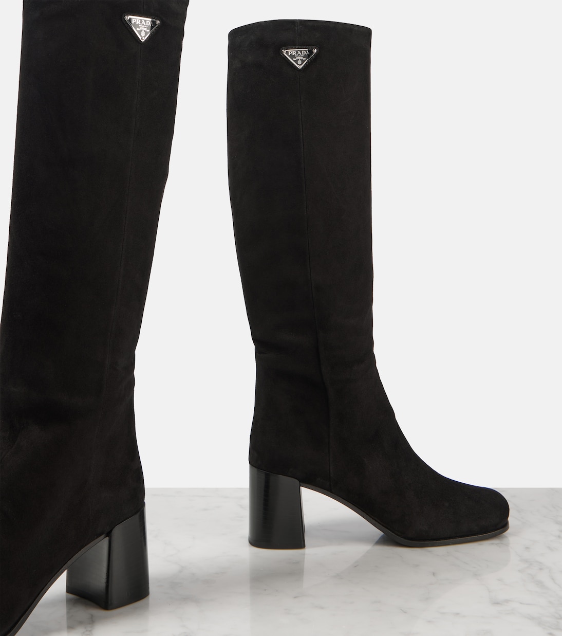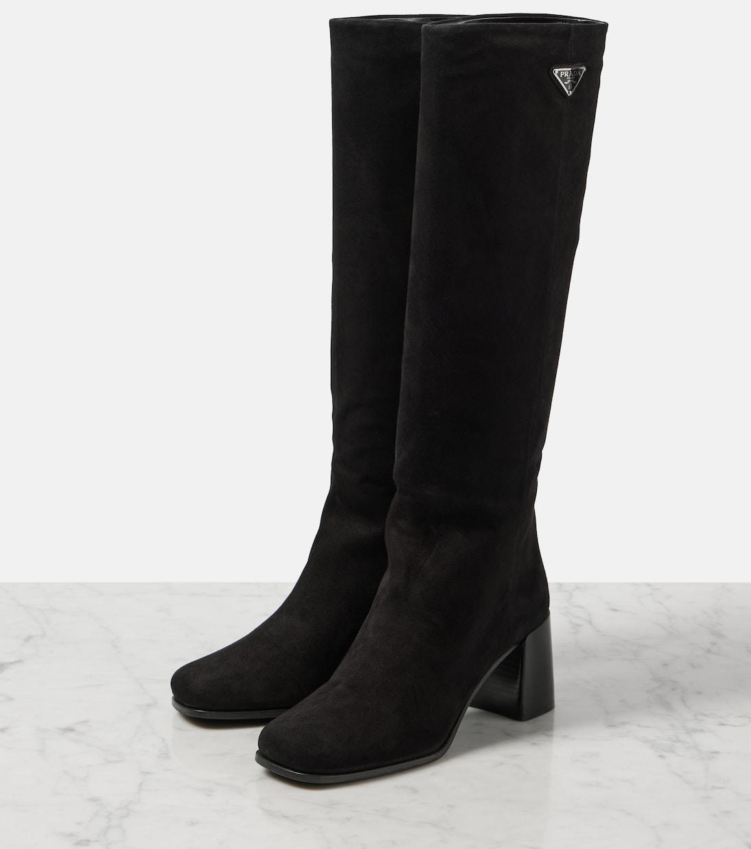 Замшевые сапоги с логотипом Prada, Nero 224 954₽