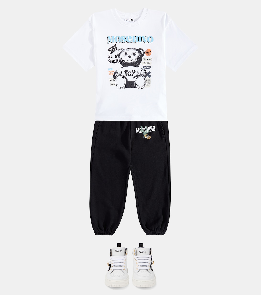 Кожаные кроссовки с логотипом Moschino Kids, белый