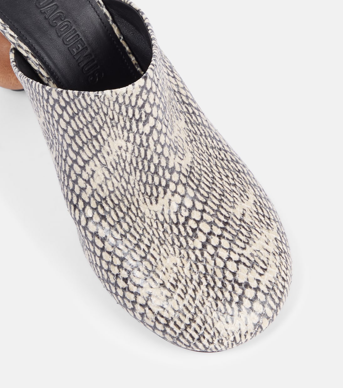Мюли Bisou 90 из кожи с эффектом змеи Jacquemus, бежевый