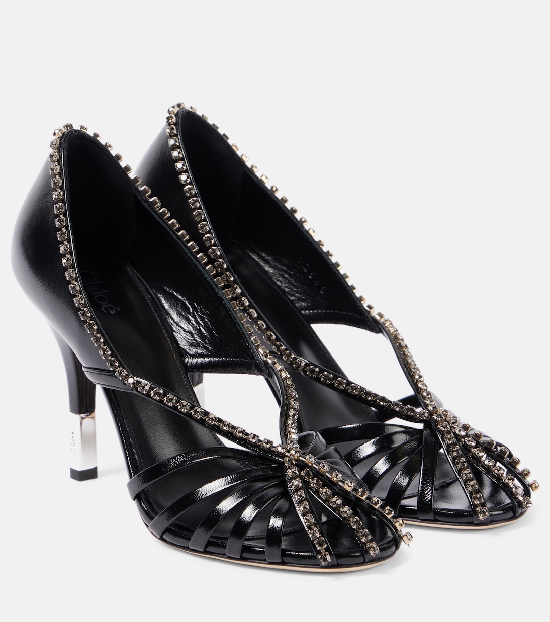Туфли-лодочки Leonie с отделкой из кожи Chloé, Black Silver