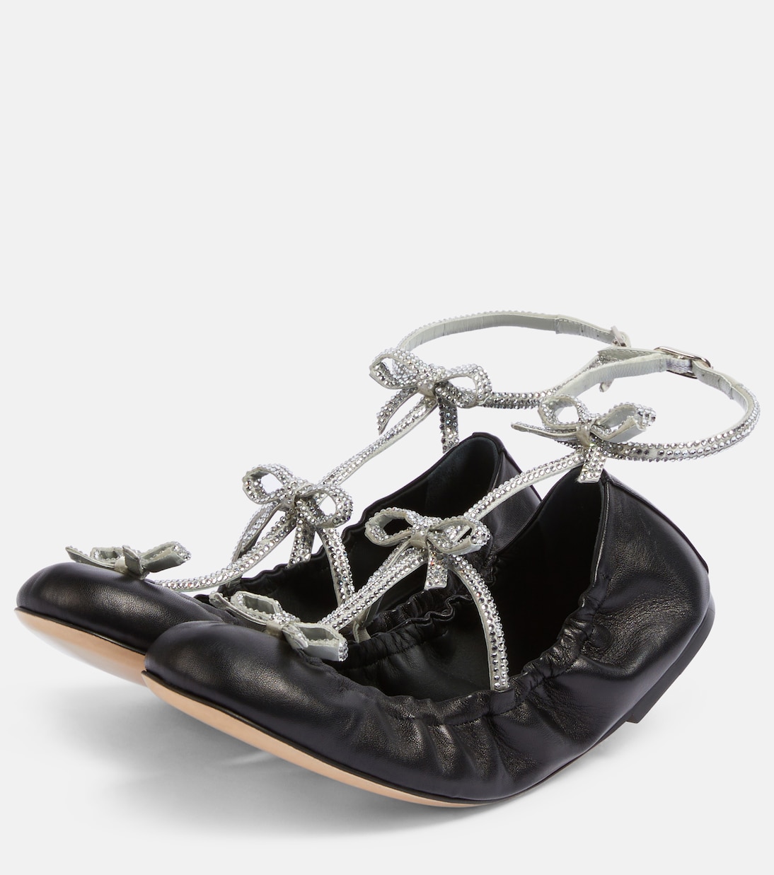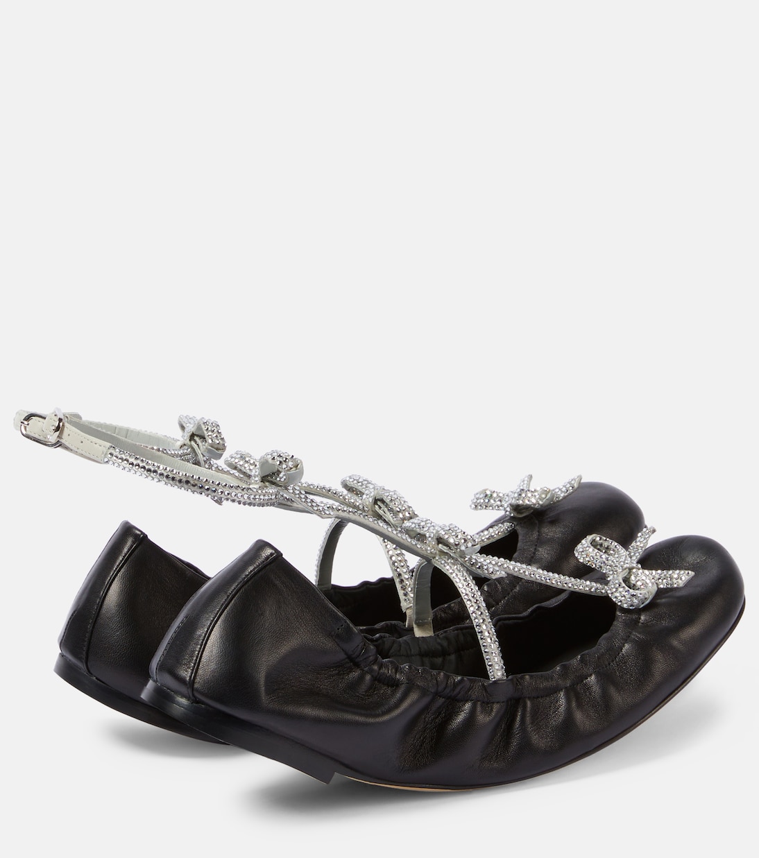 Кожаные балетки Caterina с декором Rene Caovilla, Black Lamb-Grey Satin