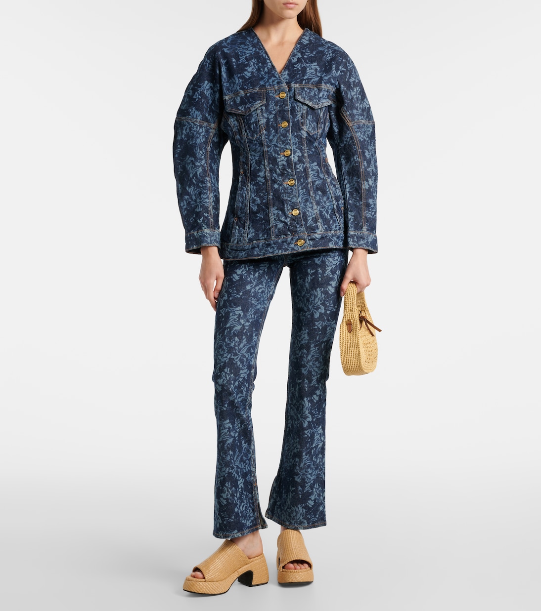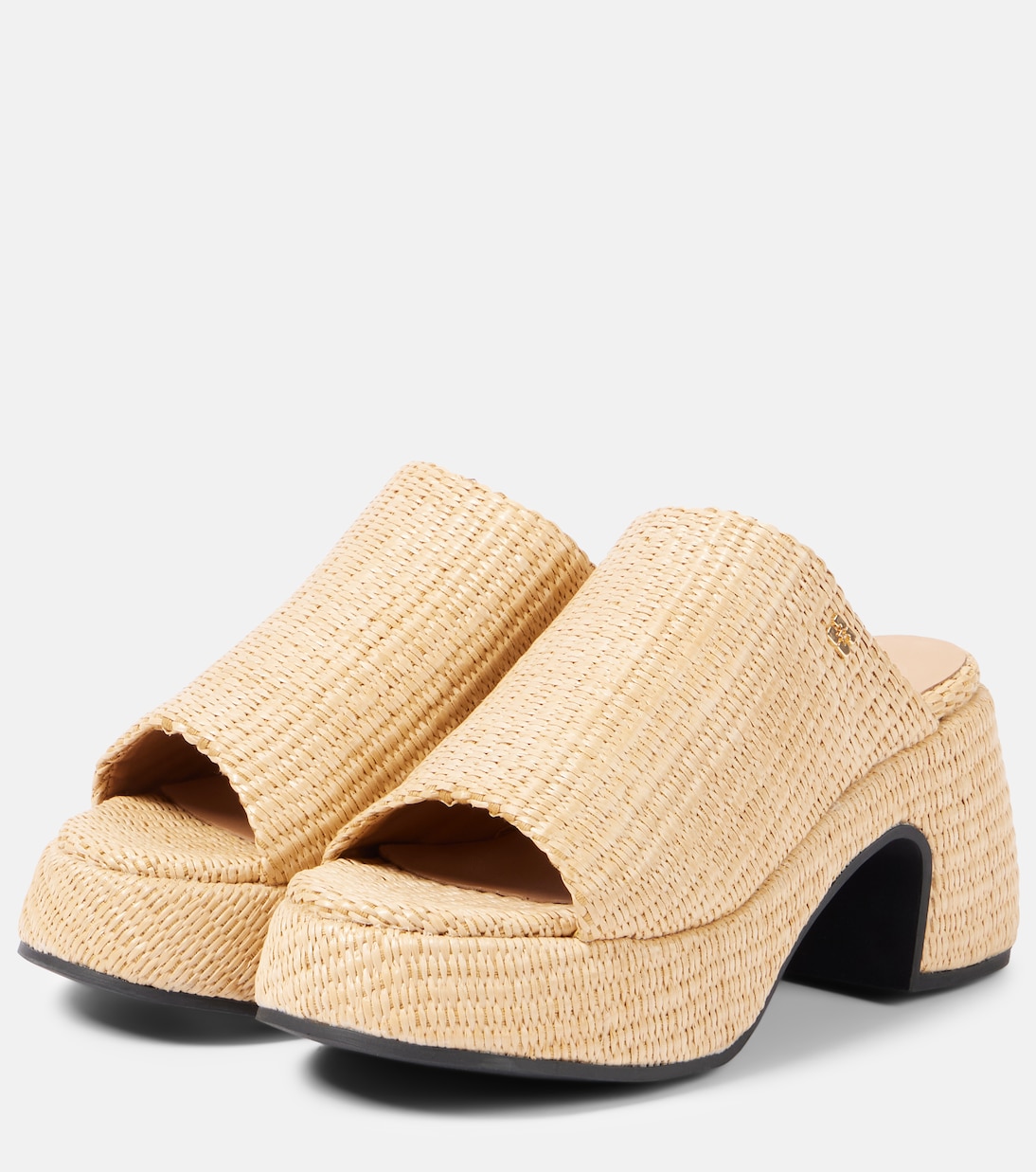 Мюли из рафии с принтом бабочек на платформе Ganni, Nature
