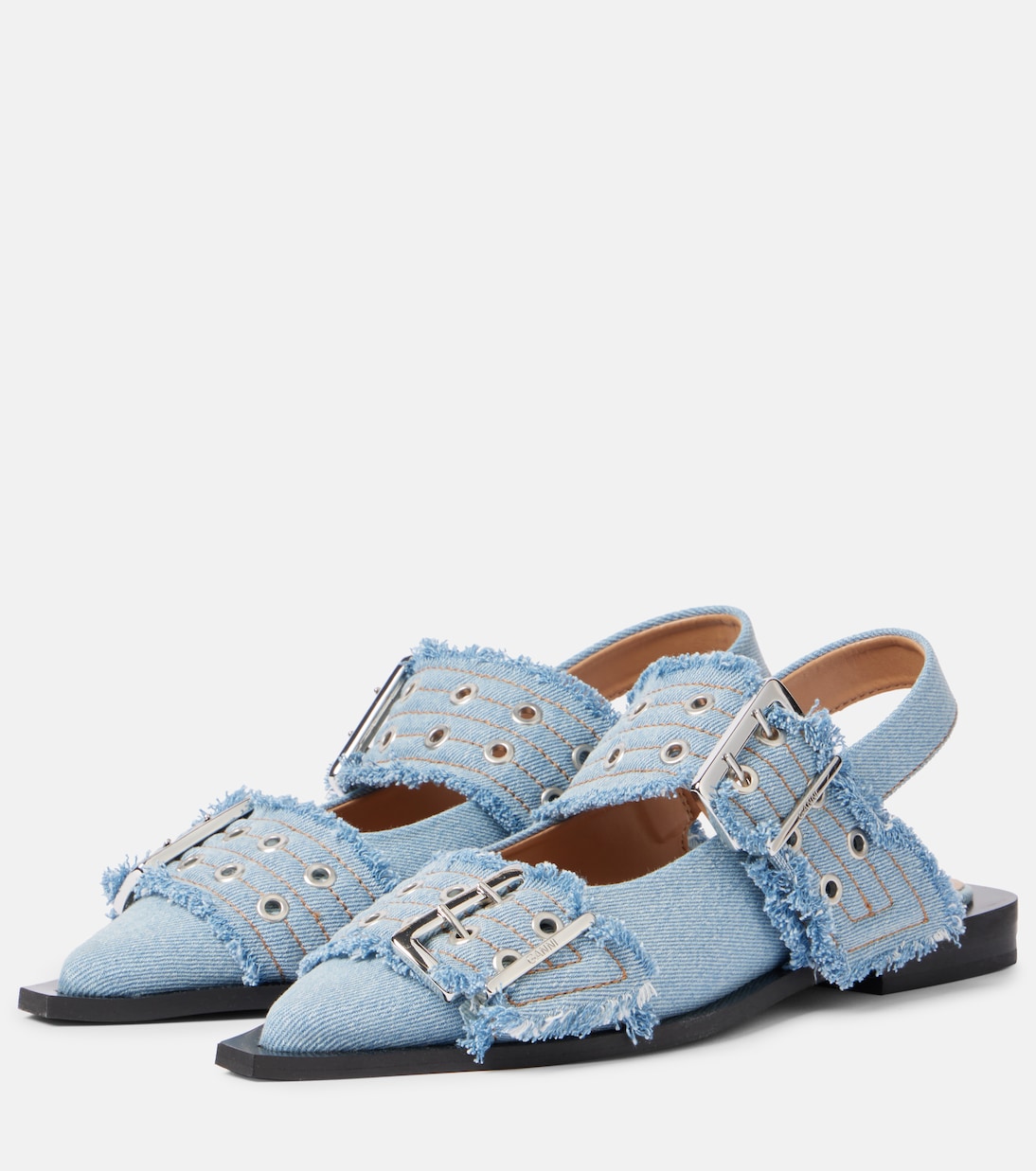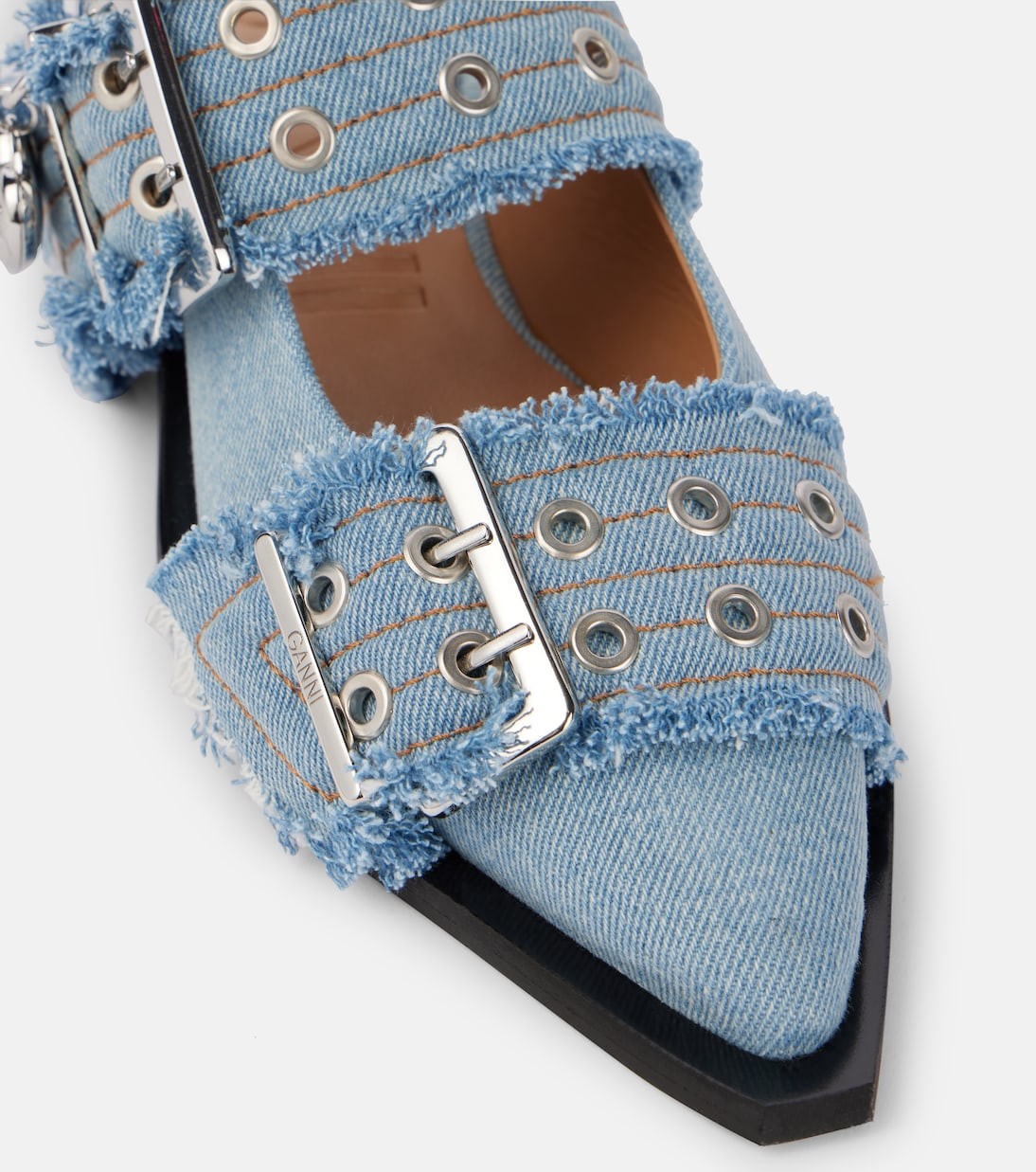 Женственные джинсовые балетки с пряжкой Ganni, Faded Denim
