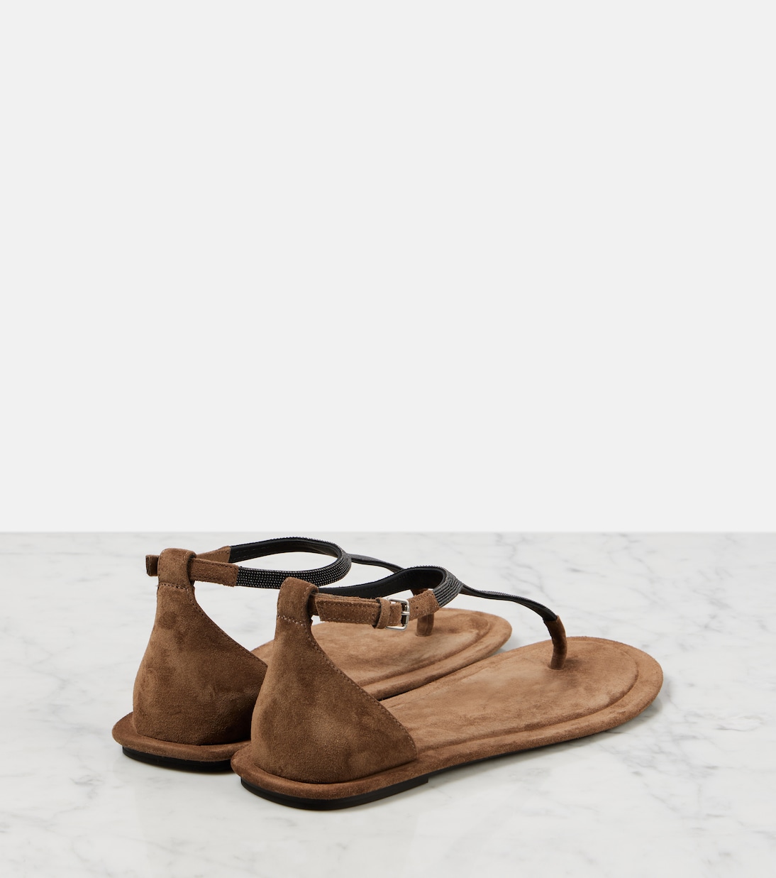 Сандалии-шлепки Monili из замши Brunello Cucinelli, Sesamo