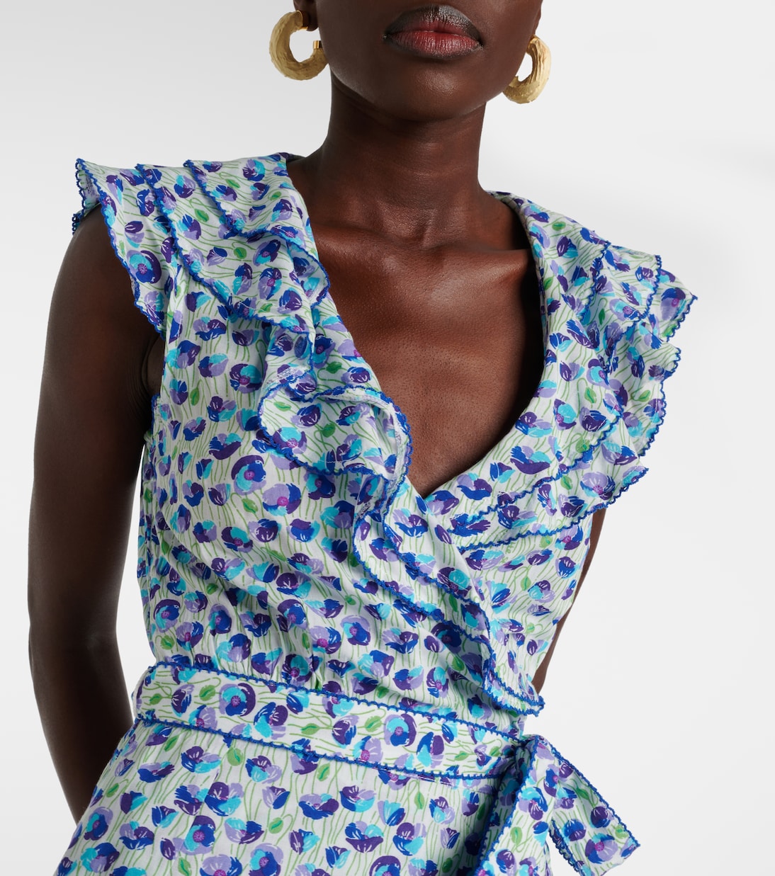 Платье миди с принтом Triny и оборками Poupette St Barth, White Blue Alamy 27 686₽