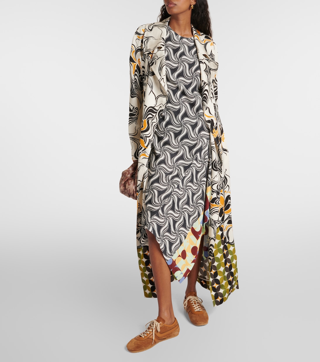Асимметричное платье миди с принтом Dries Van Noten, черный 78 759₽