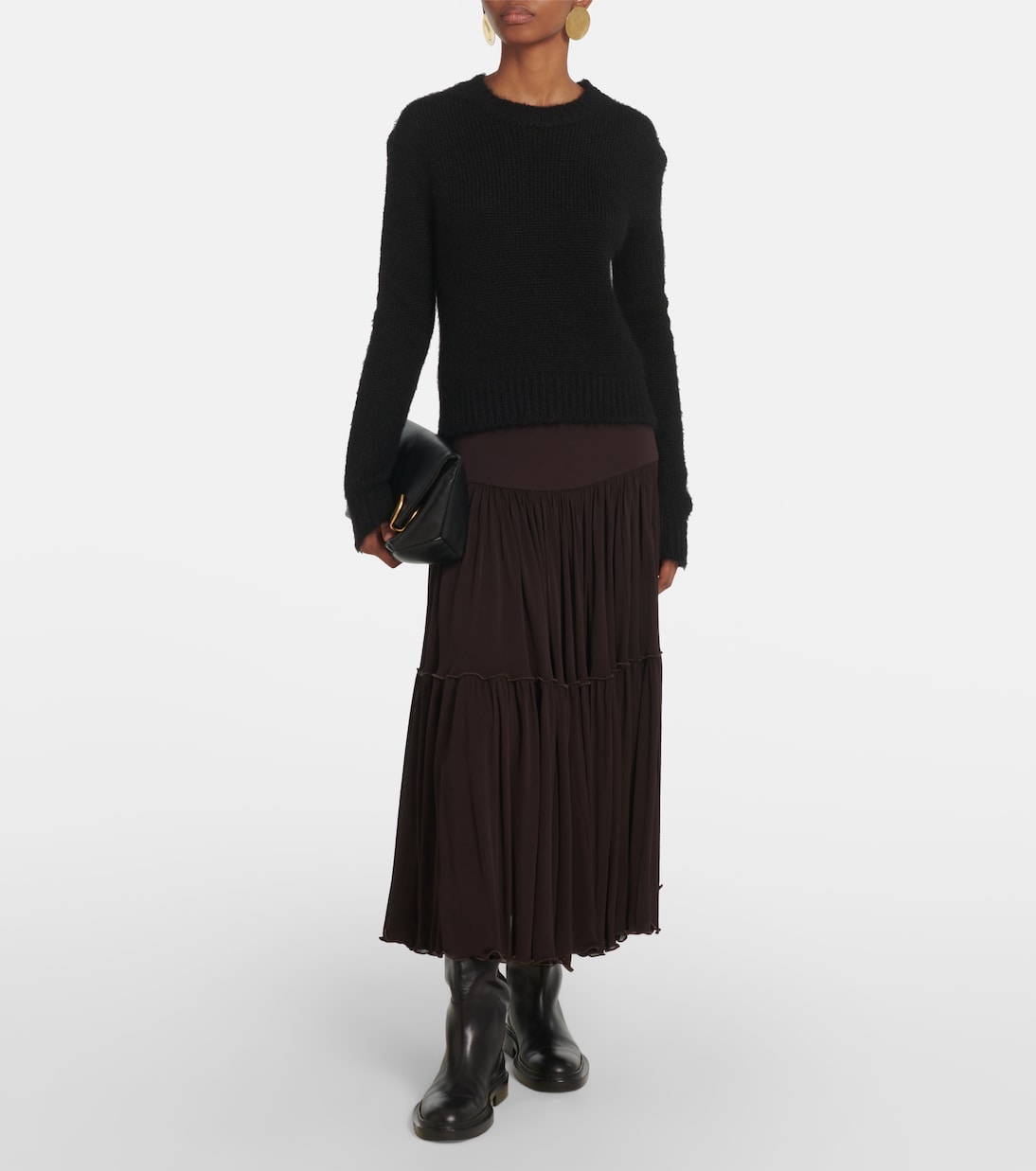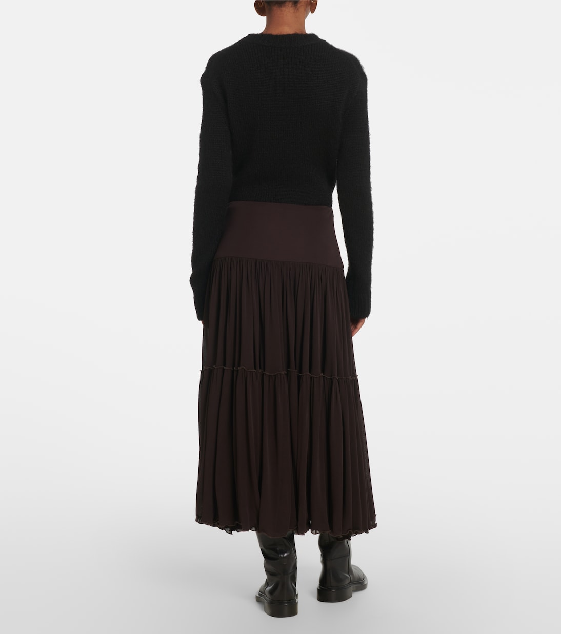 Юбка миди из плиссированного жоржета Jil Sander, Chocolate Brown