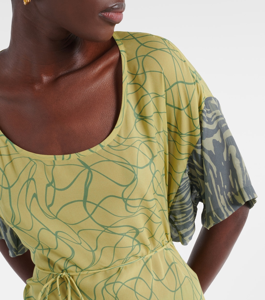 Мини-платье из принтованного жоржета Dries Van Noten, Pale Yellow