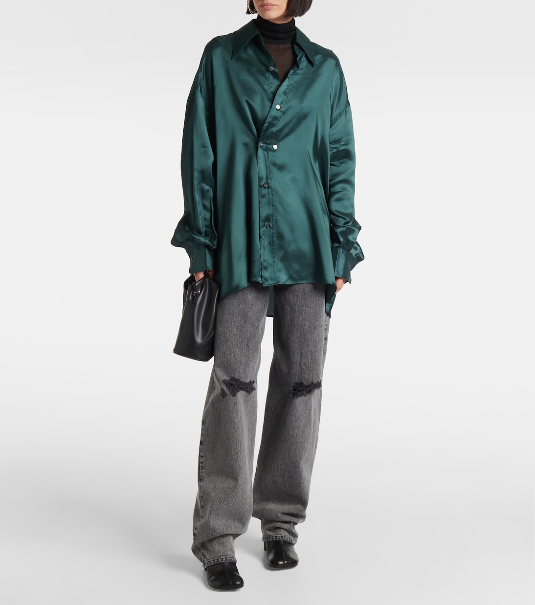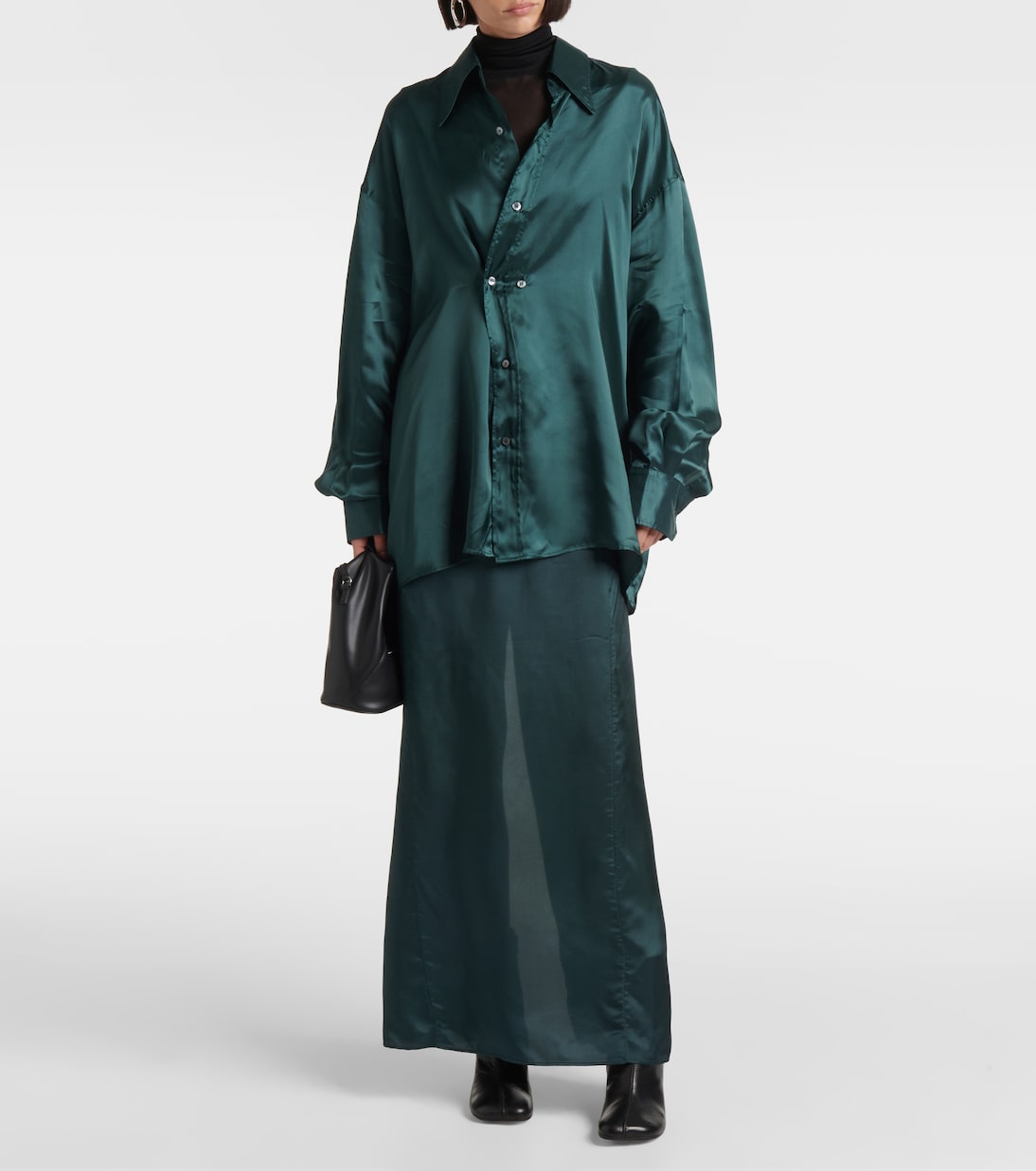 Атласная рубашка MM6 Maison Margiela, зеленый 32 493₽