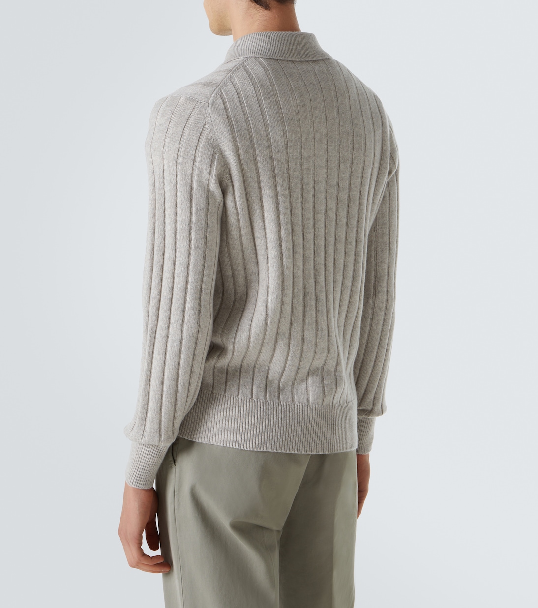 Кашемировый свитер-поло в рубчик Brunello Cucinelli, Pietra