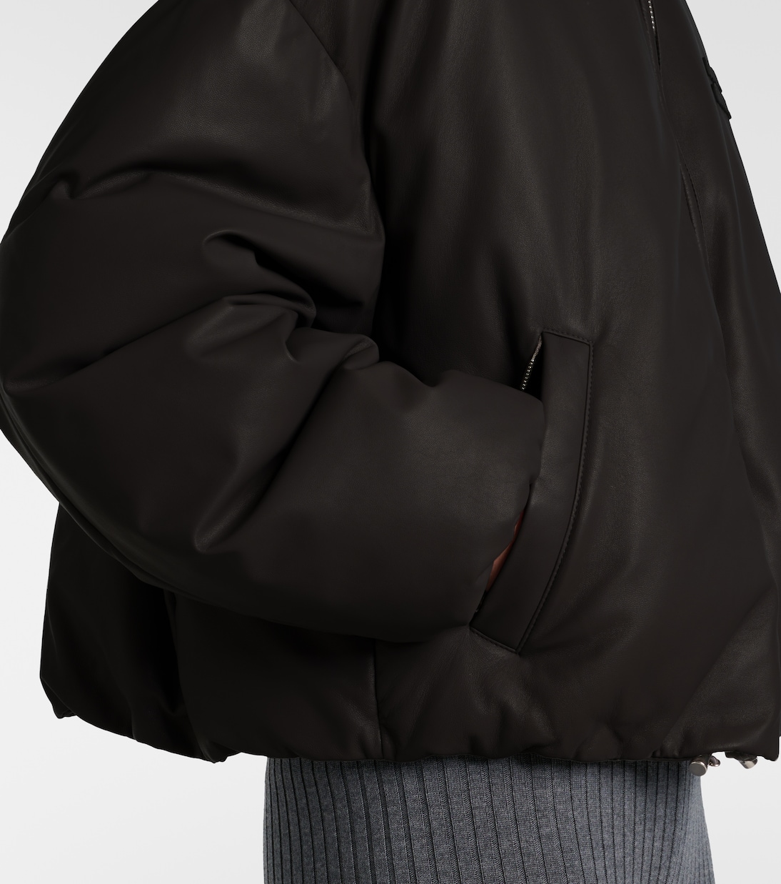 Кожаная куртка-пуховик с логотипом Miu Miu, Nero