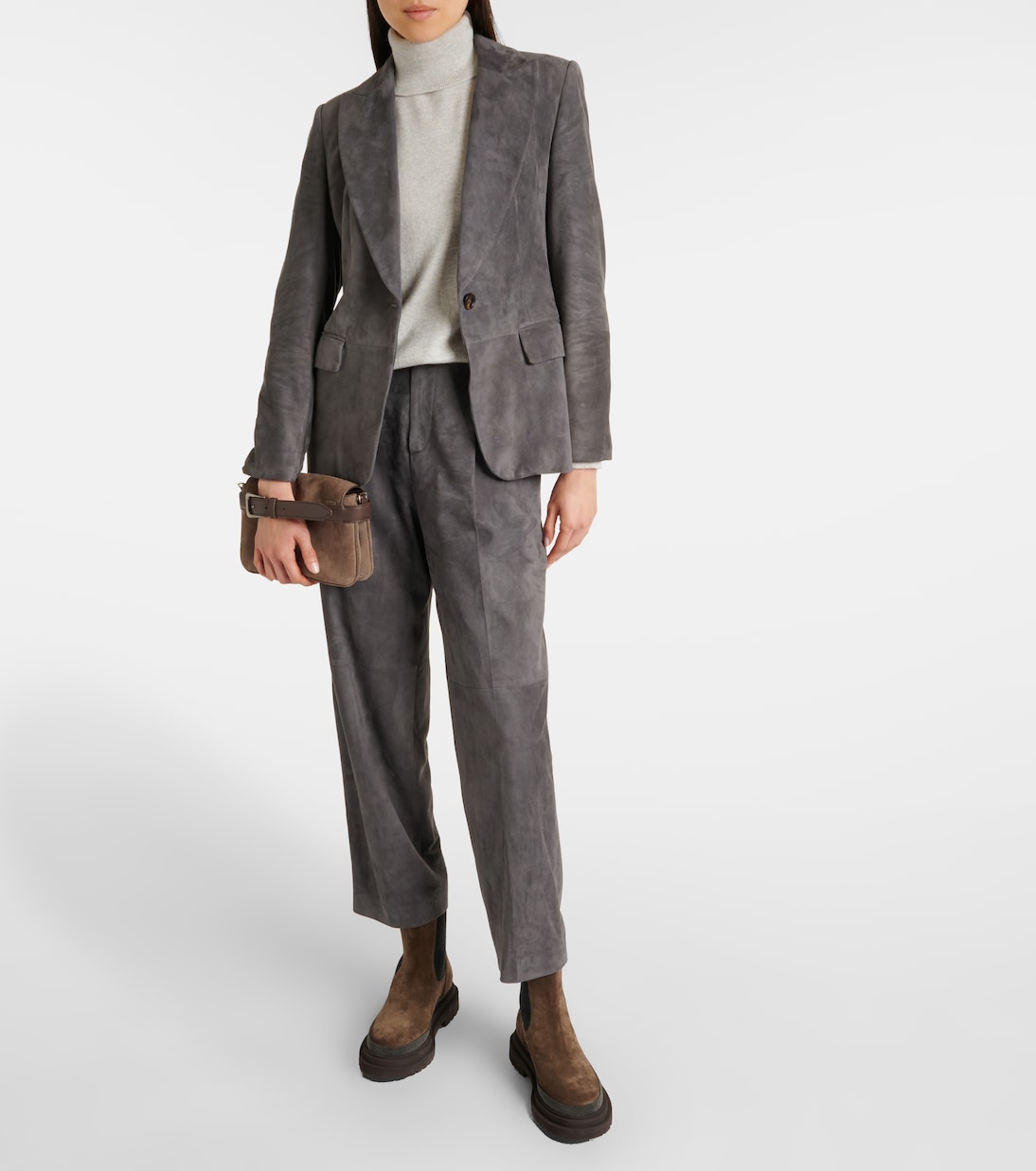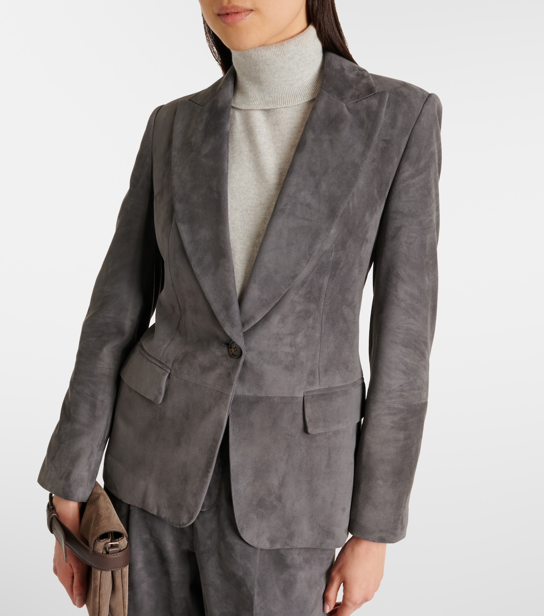 Однобортный замшевый блейзер Brunello Cucinelli, Piombo