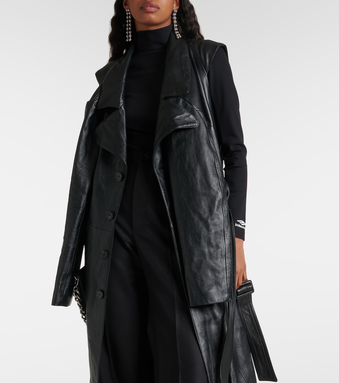 Однобортное кожаное пальто Balenciaga, черный 1 059 965₽
