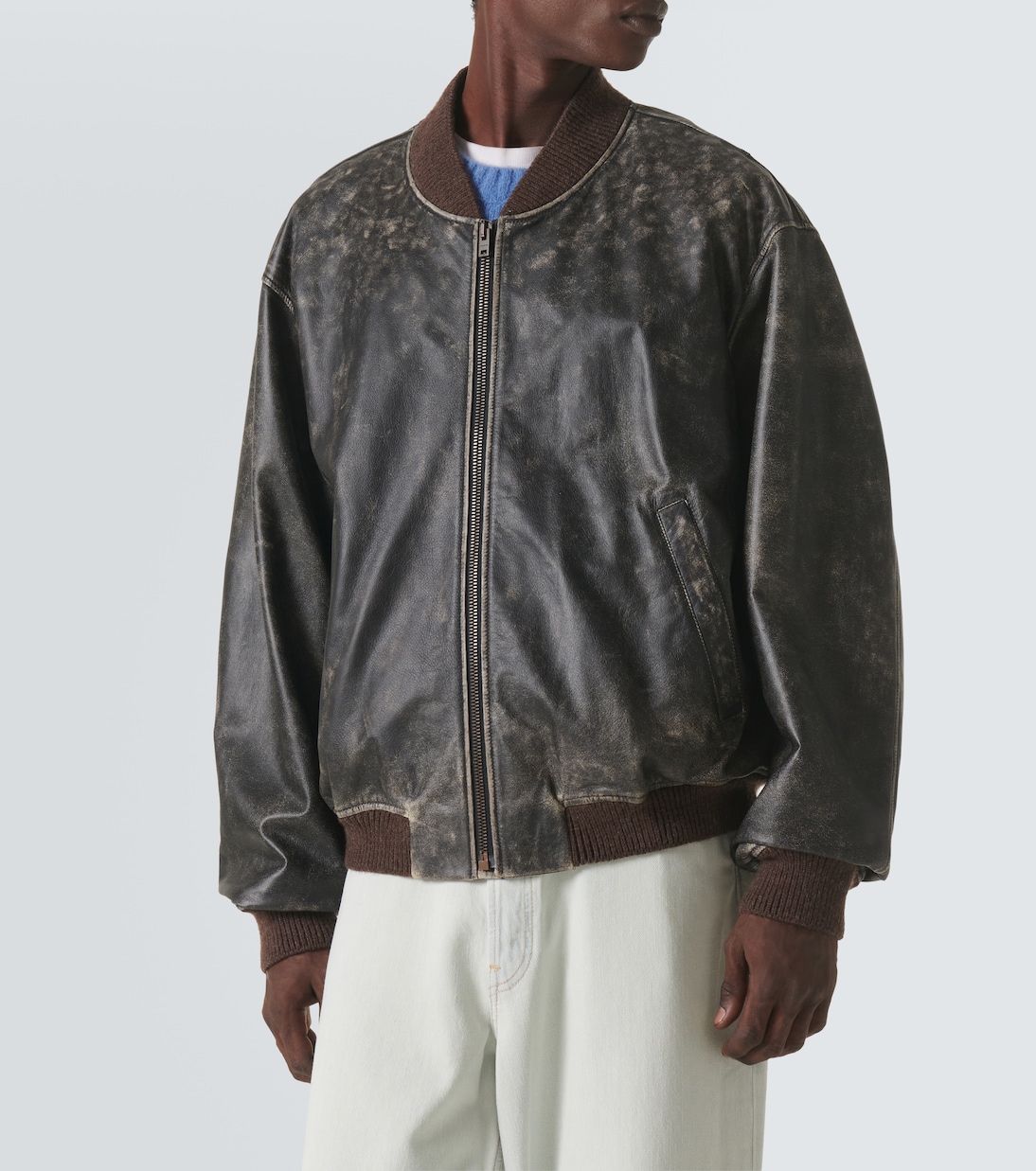 Куртка-бомбер из потертой кожи Acne Studios, черный 152 357₽