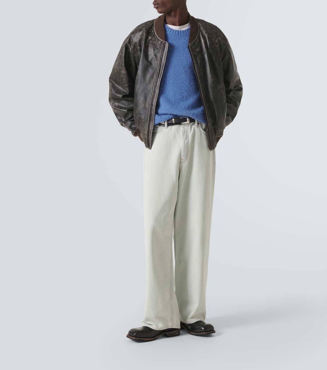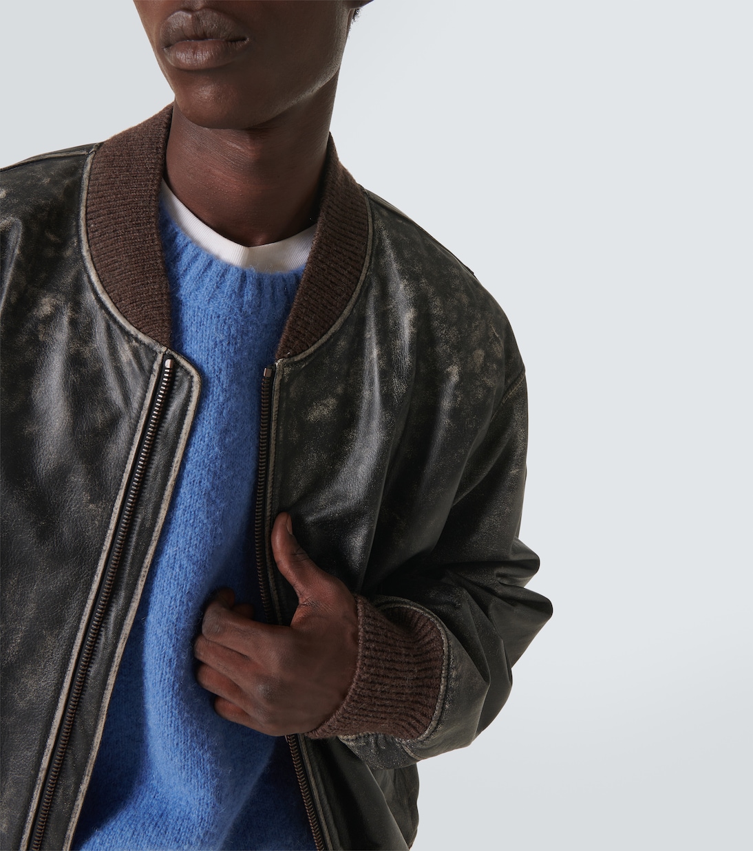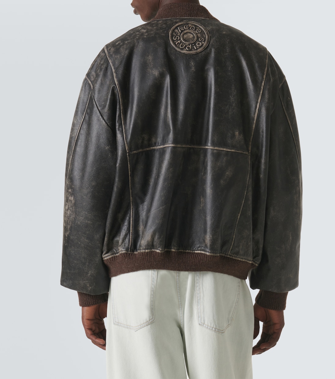 Куртка-бомбер из потертой кожи Acne Studios, черный