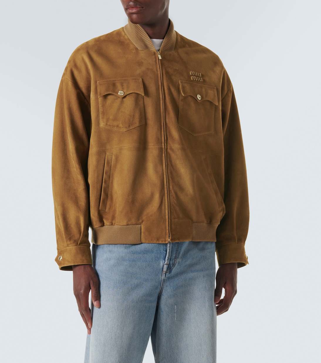 Замшевая куртка-бомбер с логотипом Miu Miu, Acero