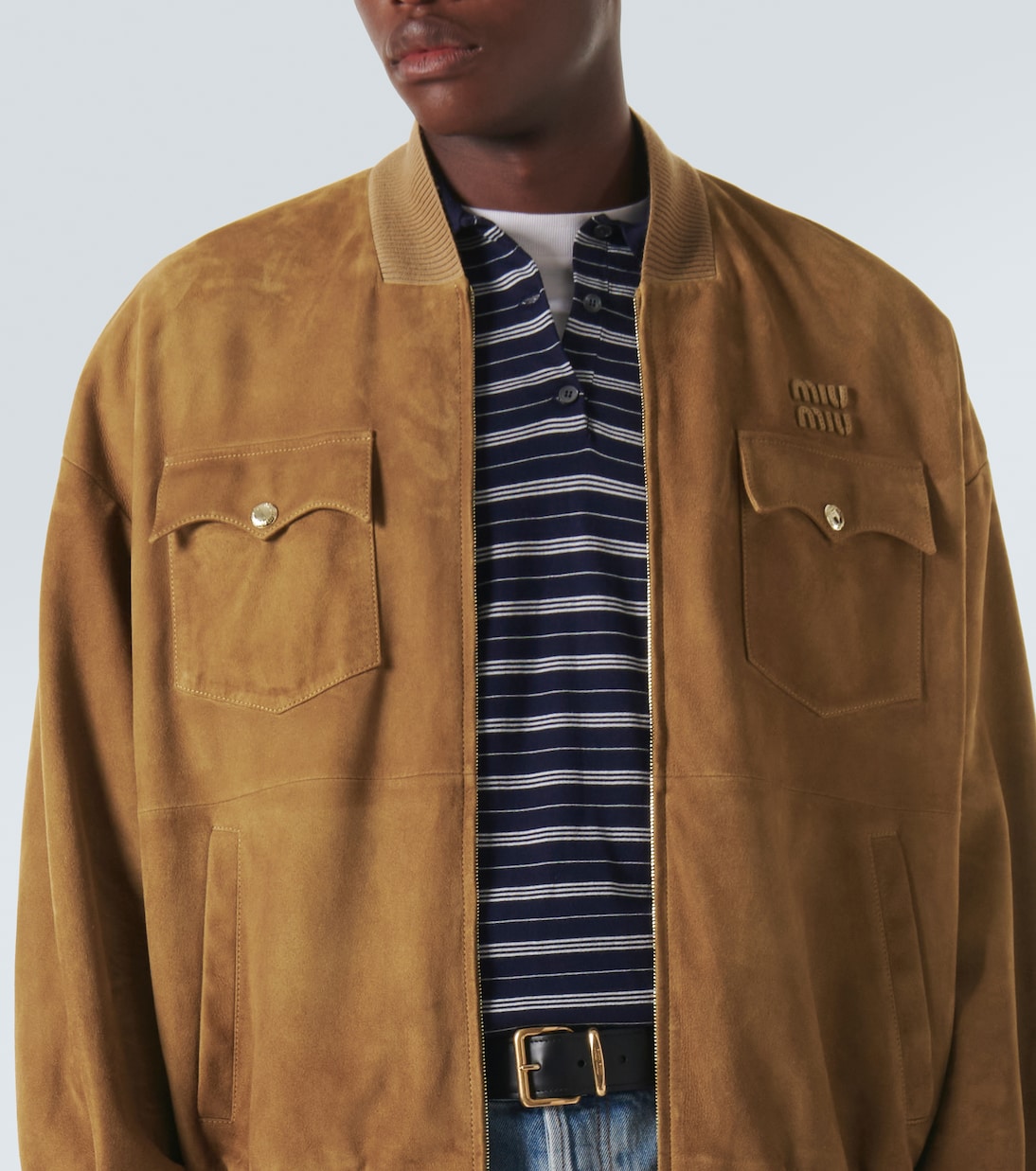 Замшевая куртка-бомбер с логотипом Miu Miu, Acero 760 681₽