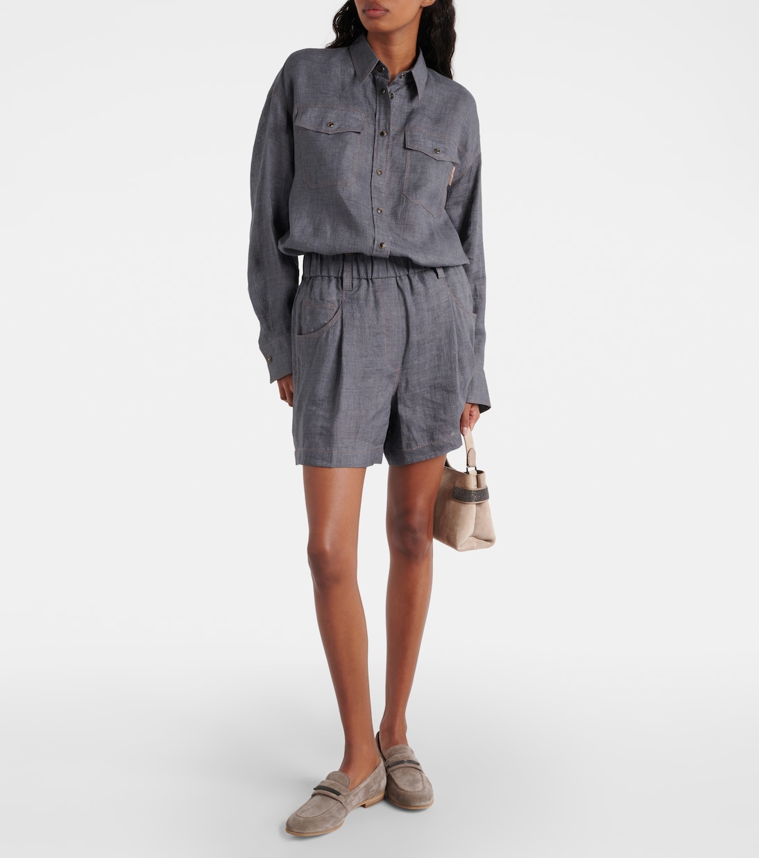 Льняная рубашка оверсайз Brunello Cucinelli, серый