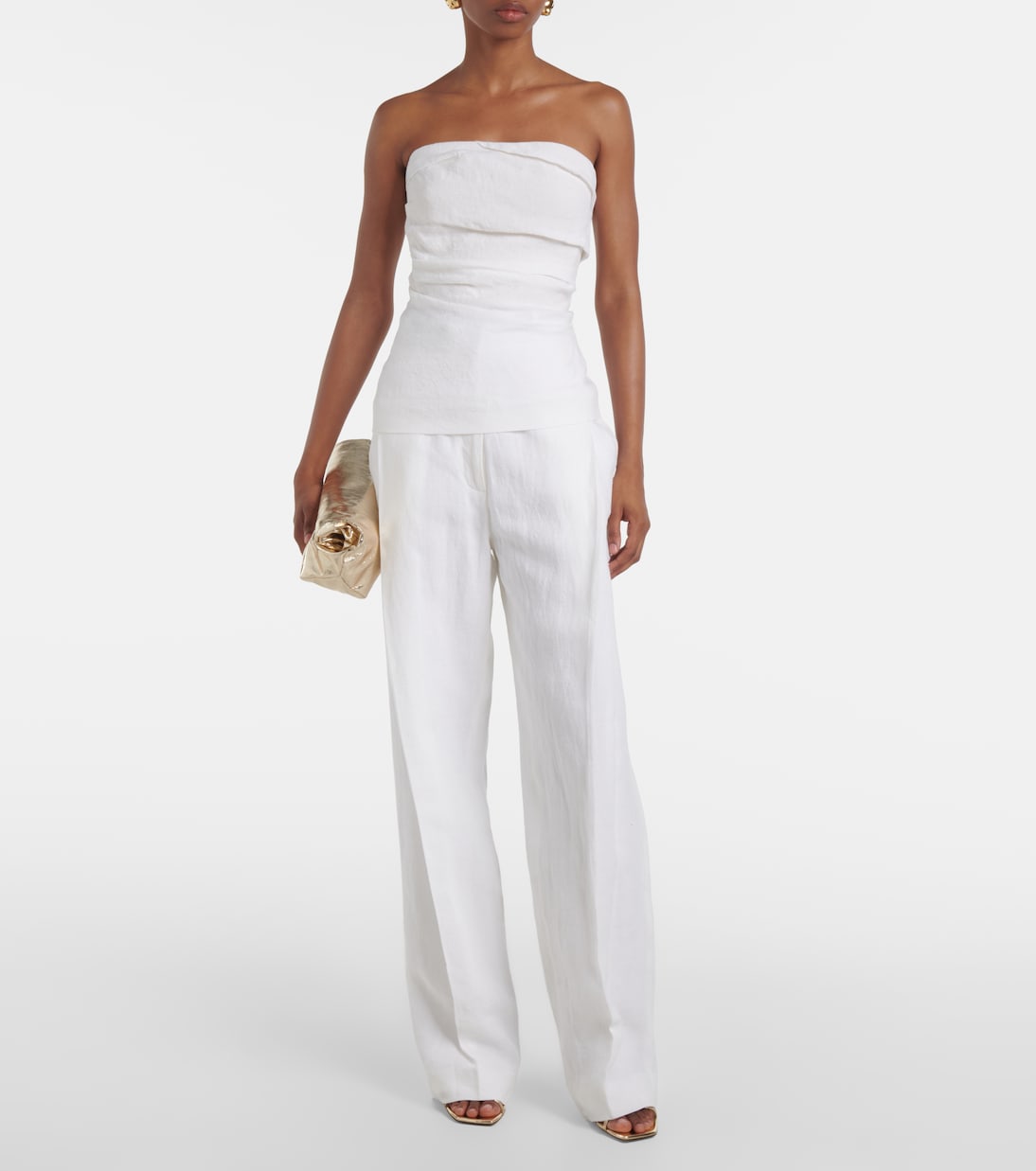 Льняной топ с драпировкой Izel Tove, белый