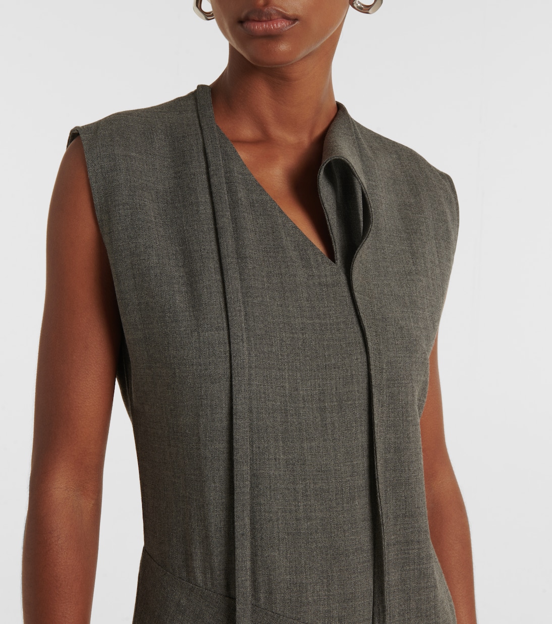Платье миди из девственной шерстяной ткани с завязкой на вороте Jil Sander, Koala