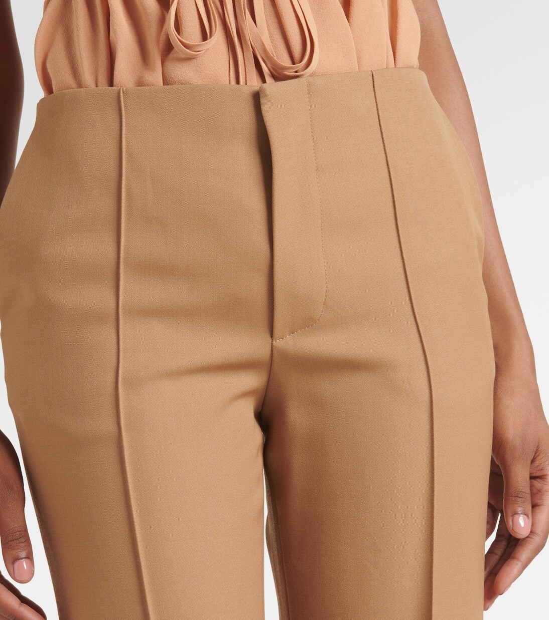 Прямые шерстяные брюки со средней посадкой Chloé, Cocunt Brown 95 061₽
