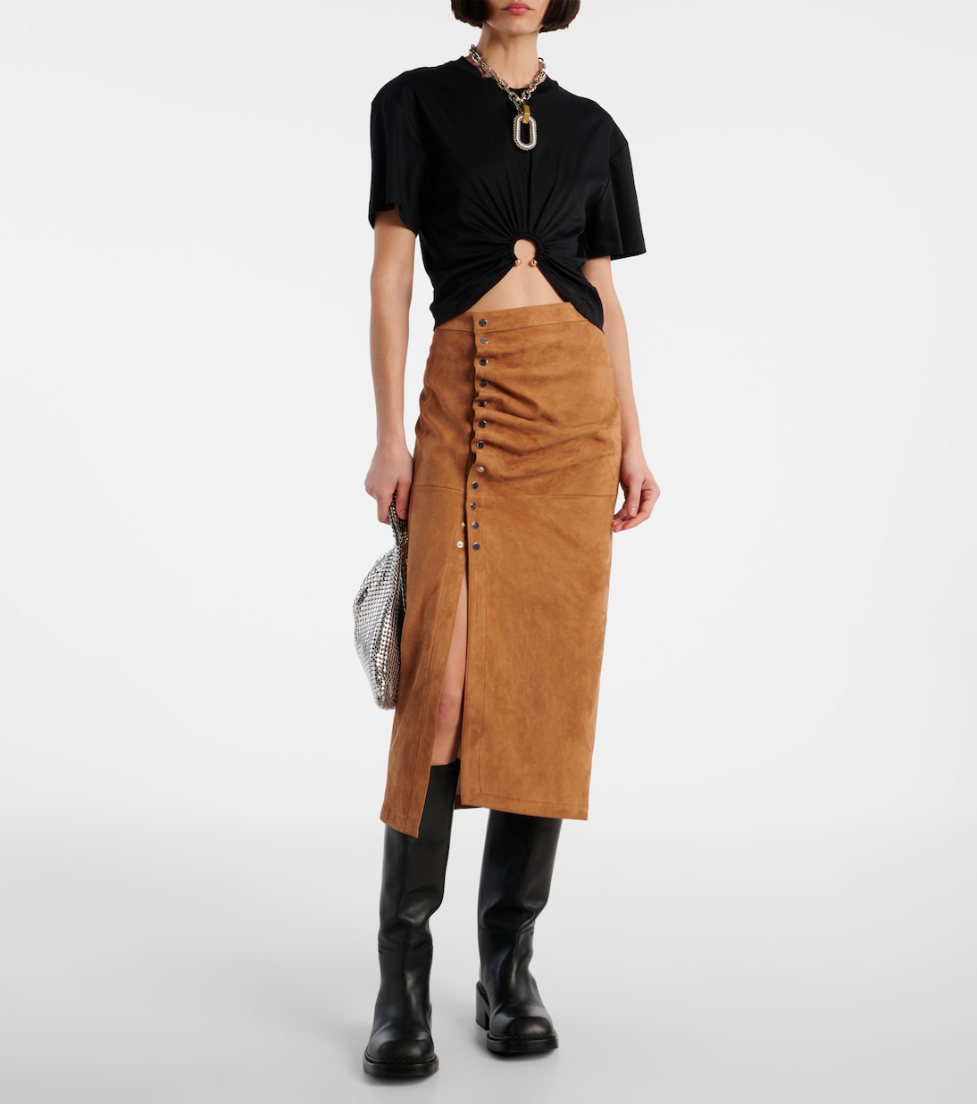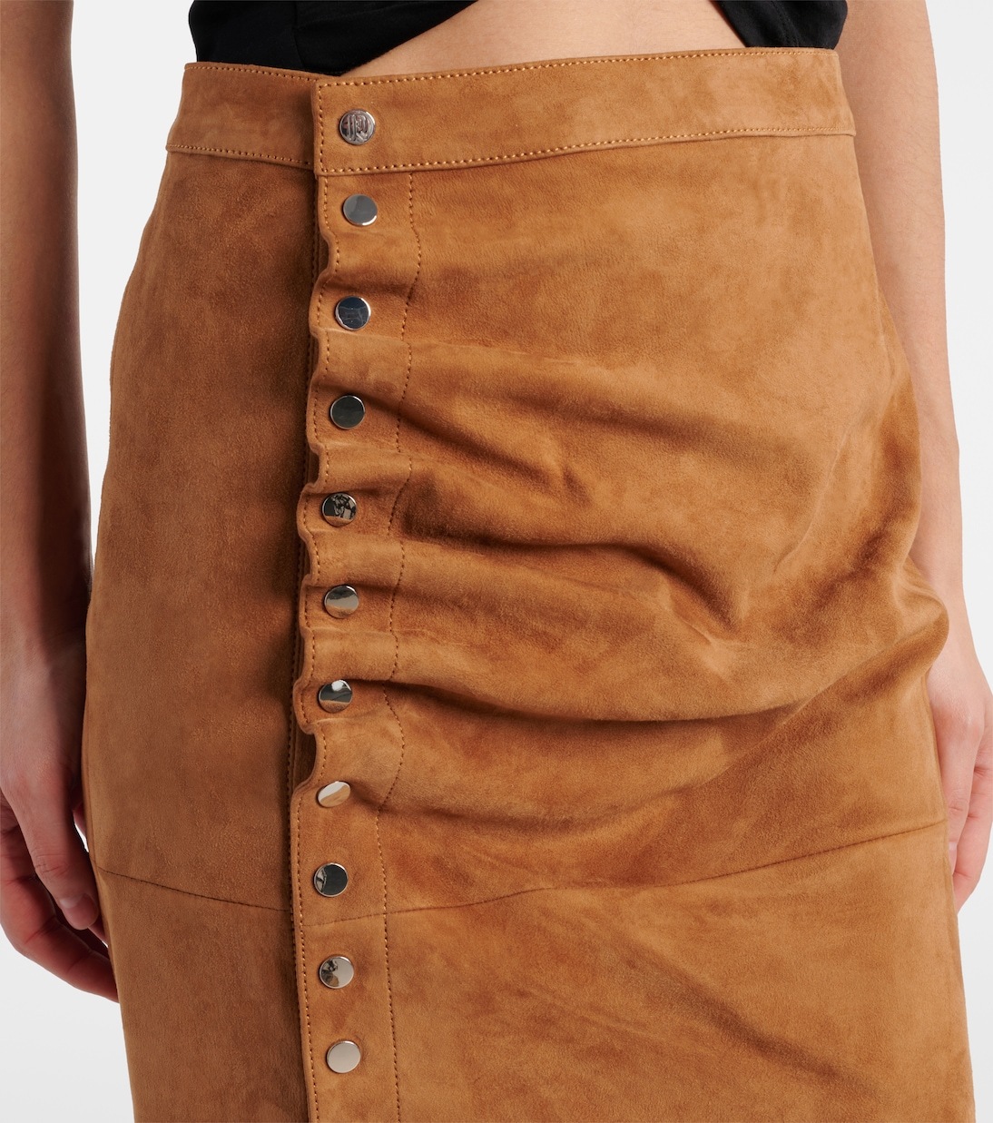 Юбка миди из замши с рюшами Rabanne, New Caramel
