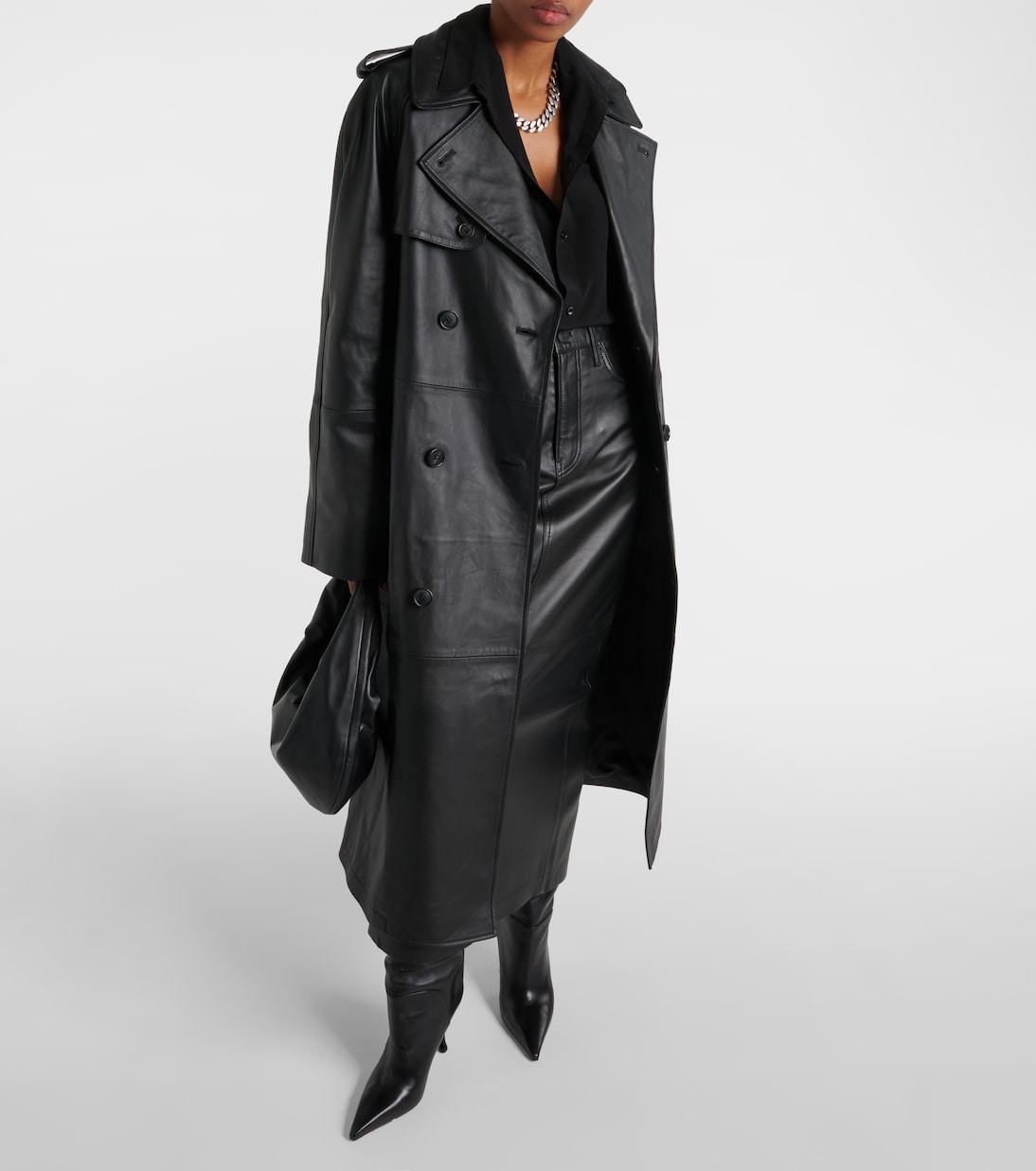 Кожаный тренчкот Wardrobe.NYC, черный