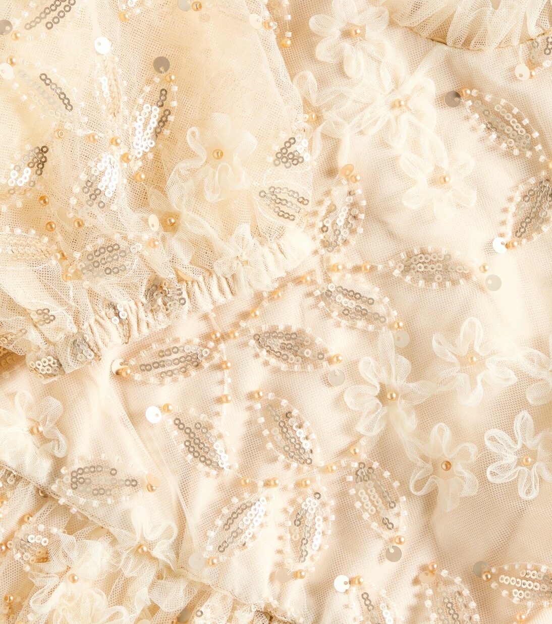 Платье из тюля с пайетками Self-Portrait Kids, кремовый