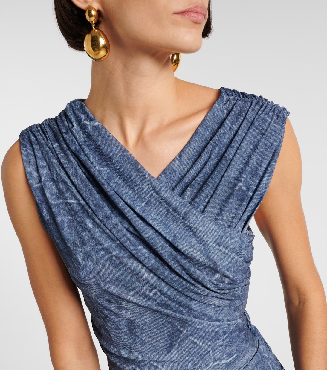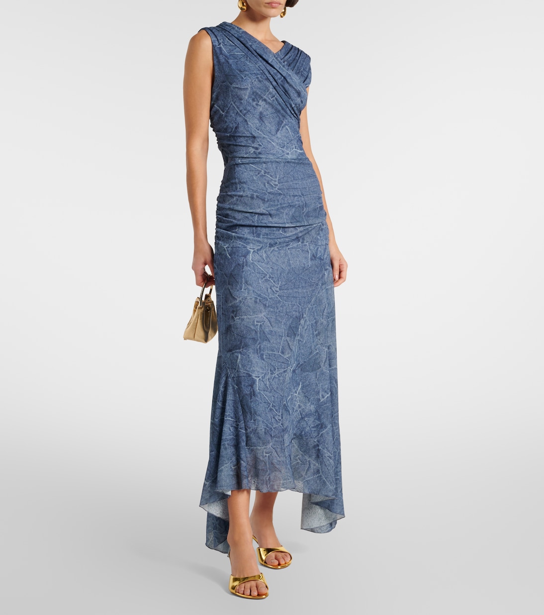 Платье макси из сетки с принтом и сборками Ganni, Denim
