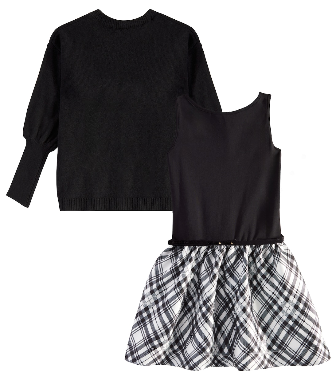 Платье-свитер с поясом Monnalisa, Nero + Panna