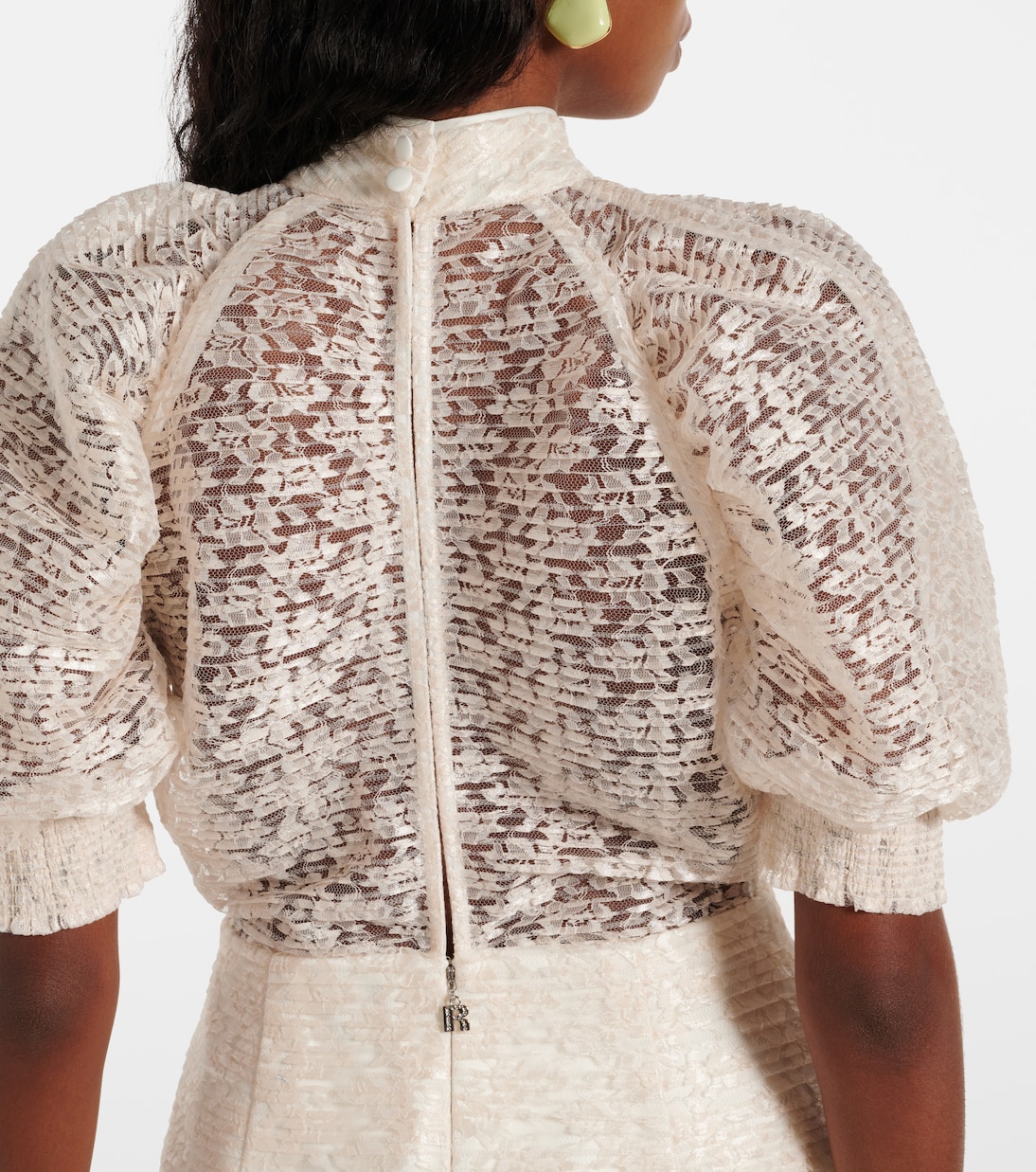 Свадебное мини-платье из плиссированного кружева Rotate, Egret