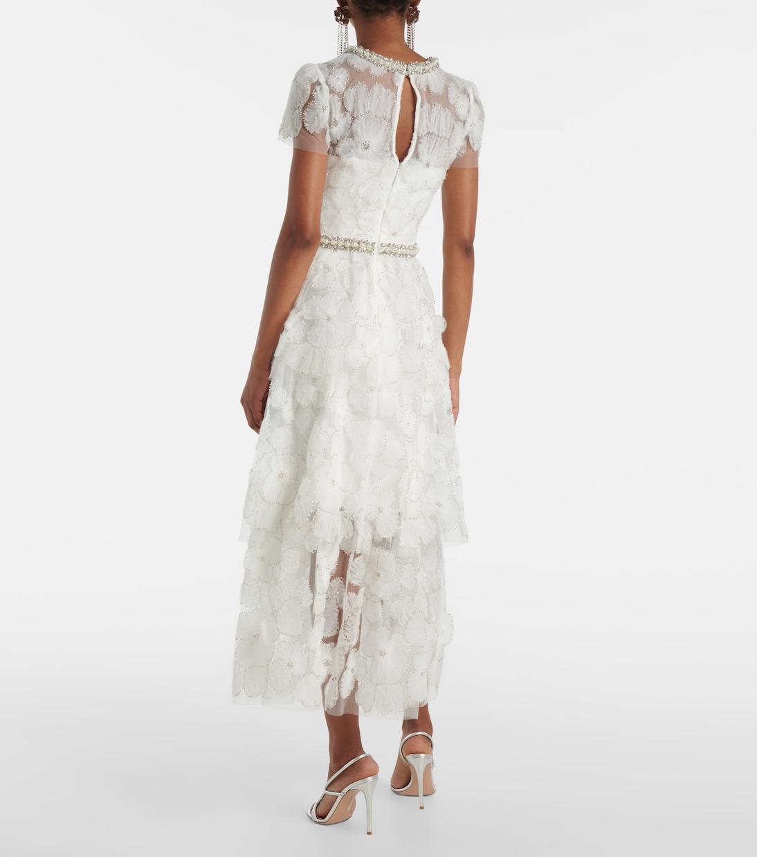 Свадебное платье миди из тюля с бисером Self-Portrait, белый