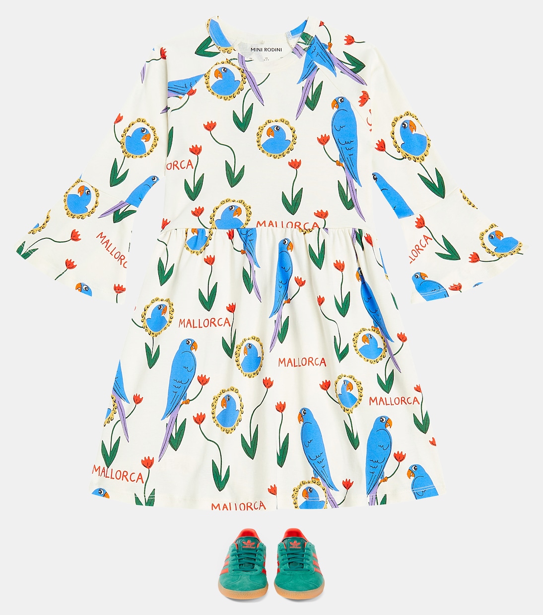 Платье из хлопка с попугаями Mini Rodini, разноцветный 10 089₽