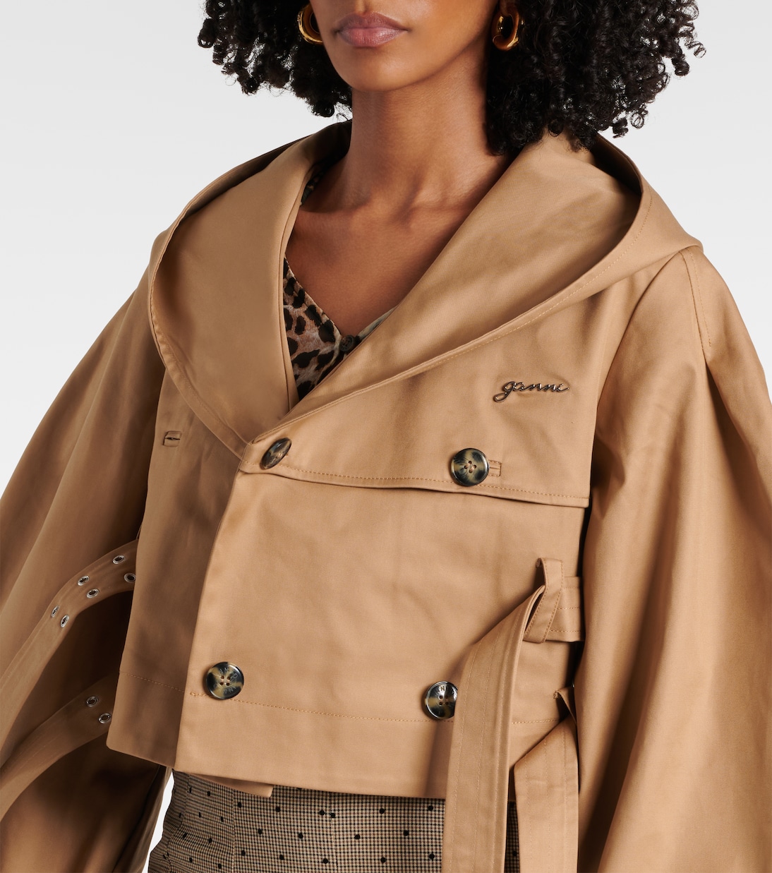 Двубортный хлопковый жакет Ganni, Tiger'S Eye