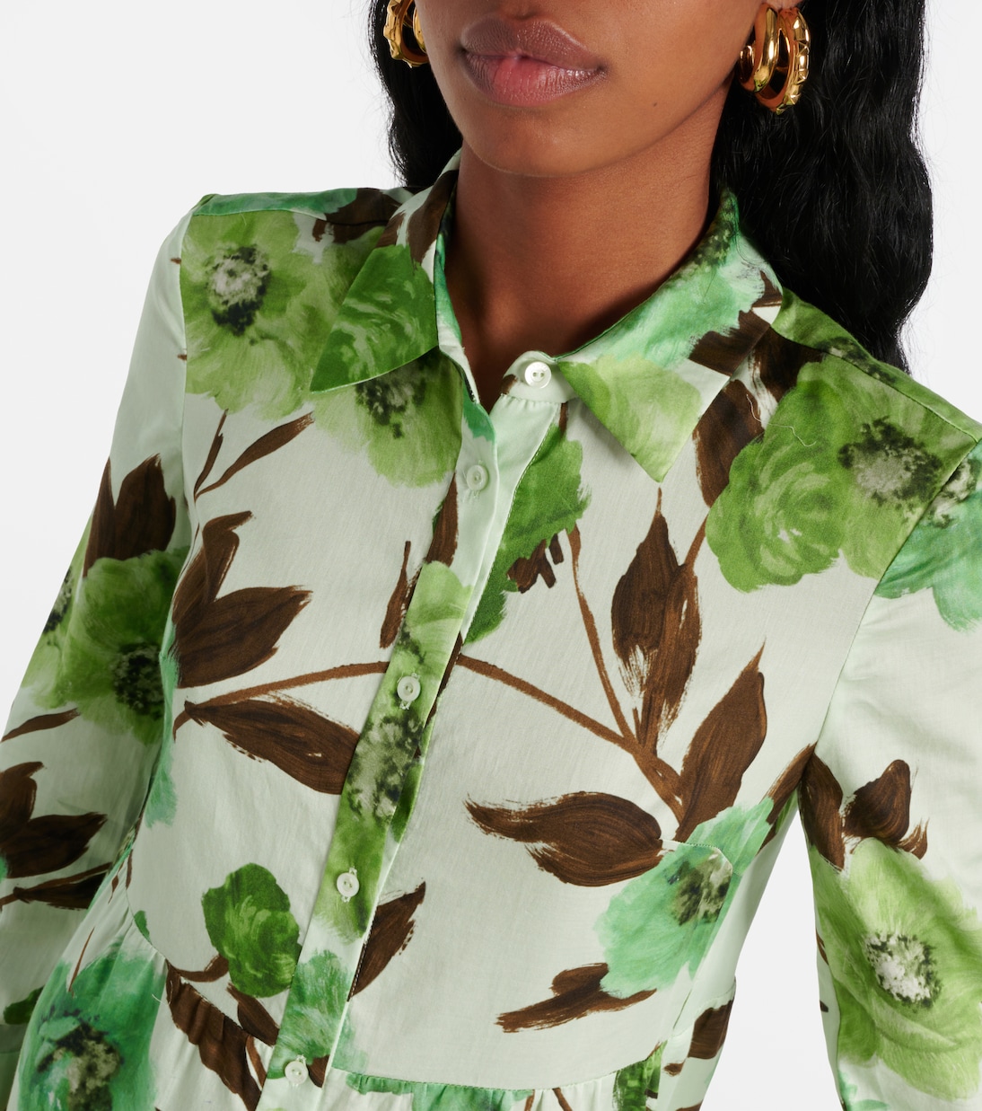 Платье-рубашка из хлопка с цветочным принтом Erdem, Pistachio