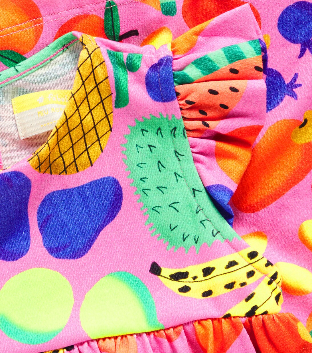 Детское хлопковое платье с оборками и принтом Fábula, Est Frutaria Fundo Rosa