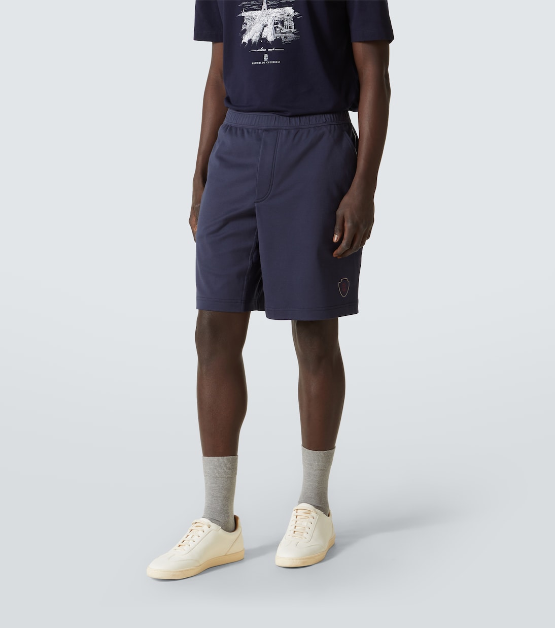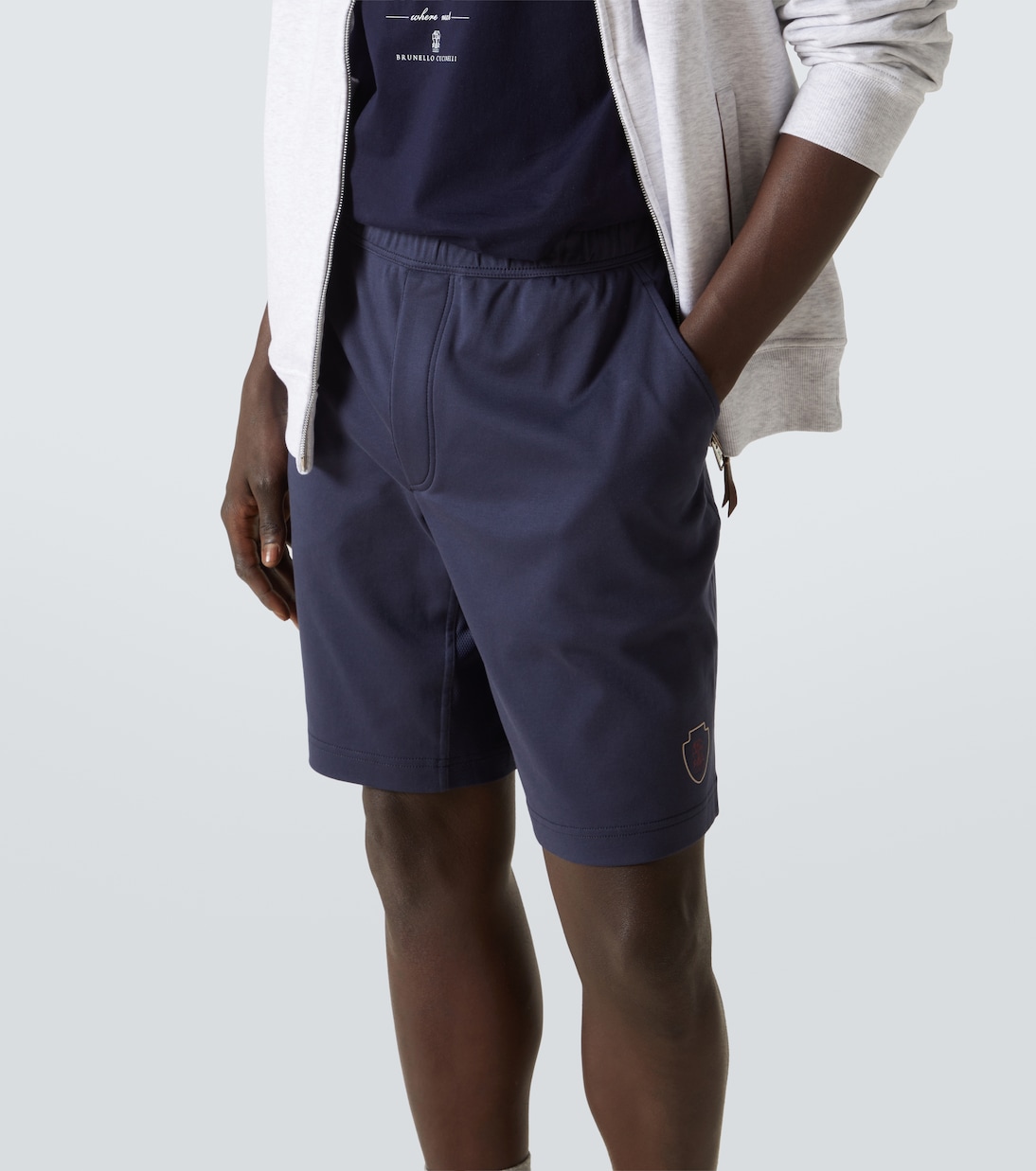 Шорты из хлопкового джерси с логотипом Brunello Cucinelli, синий