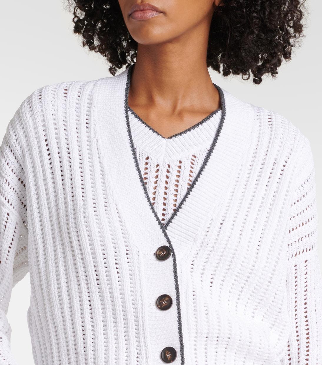 Хлопковый кардиган в рубчик Brunello Cucinelli, Bianco