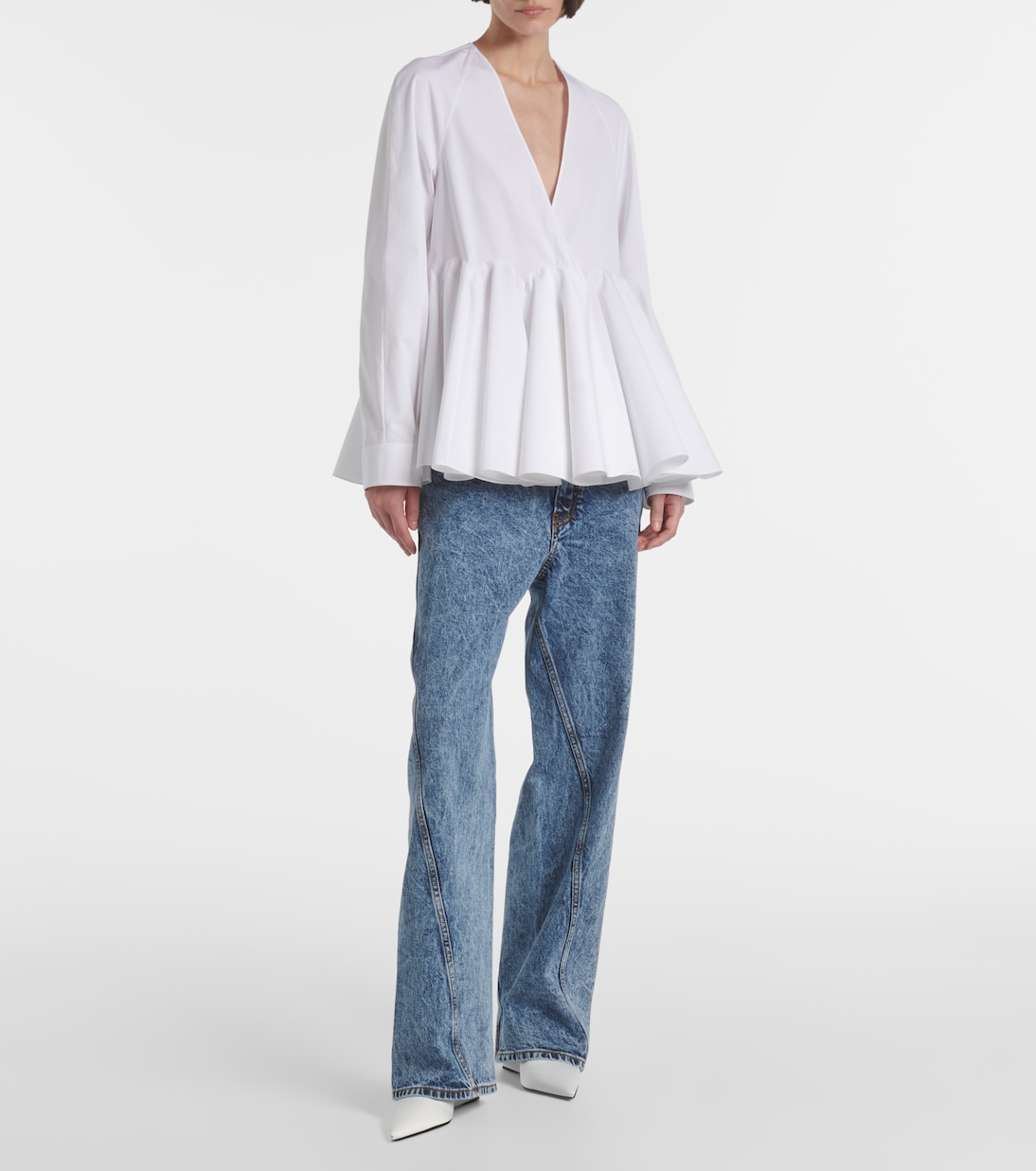 Расклешенная хлопковая блузка Alaïa, Blanc