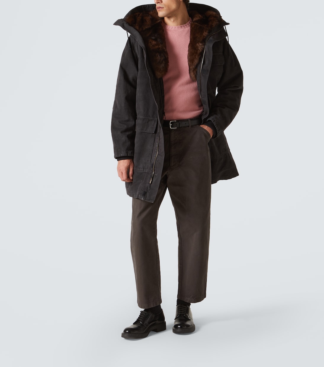 Хлопковая парка с отделкой из овчины Prada, Nero 660 983₽