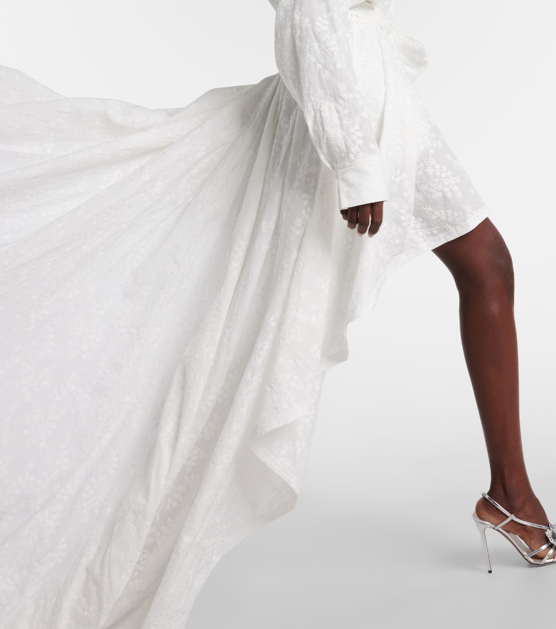 Вышитое асимметричное хлопковое платье Norma Kamali, White Vines