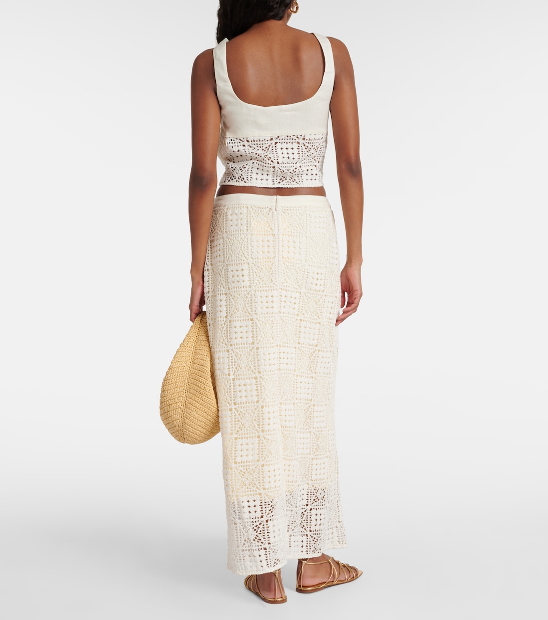 Юбка макси Rayure крючком из хлопка SIR, слоновая кость