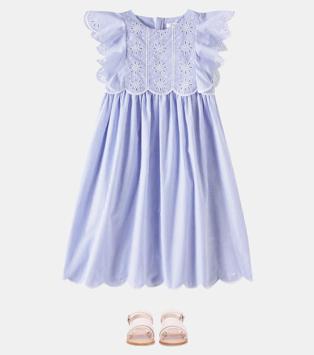 Полосатое вышитое платье Chloé Kids, White Blue 46 136₽